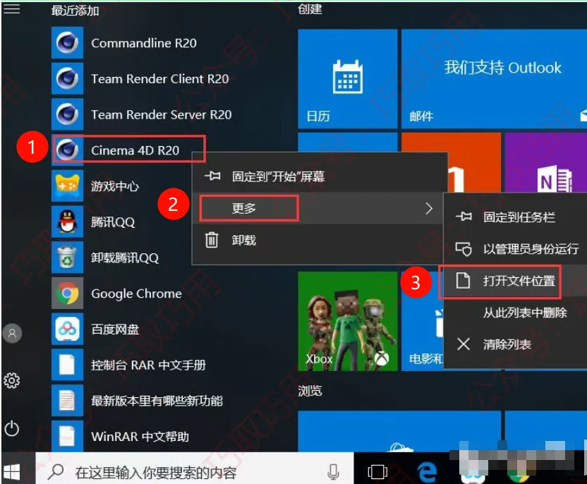 第二十一步:在开始菜单栏选中软件图标右键 点击更多 在点击打开文件位置