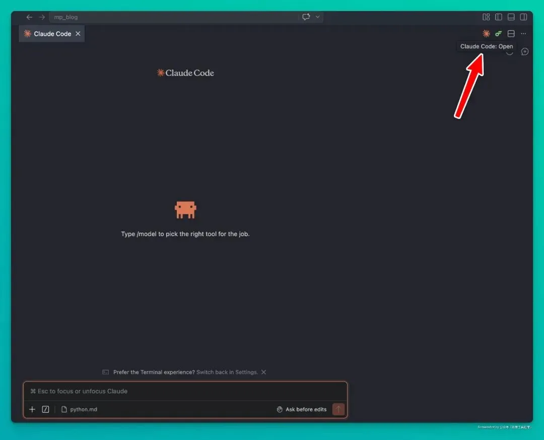 ③ 安装完成后,VS Code 右上角会多出一个 Claude 的图标,点击即可在 VS Code 中使用 Claude Code
