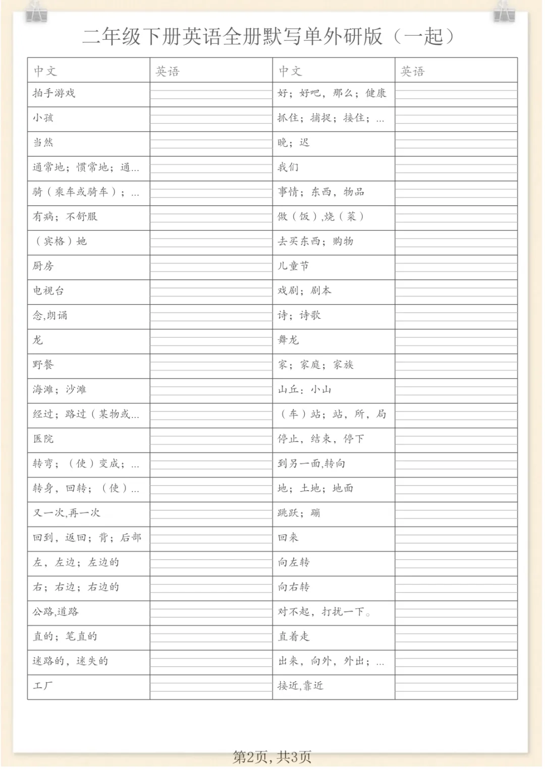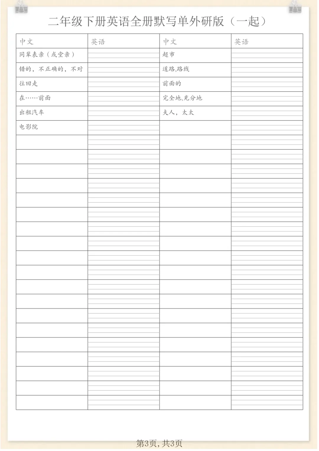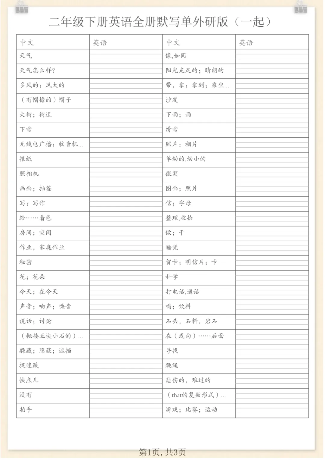 二年级下英语全册默写单(看中写英)《外研版(一起)》,电子版可打印 None (温馨提示:文末有完整领取方式) 免费领取完整电子版 ①:点一点右下角的“赞”和“在看”,感谢!②:在公众号对话框中回复: 9522 ③: 点击小程序领取→电子版资料