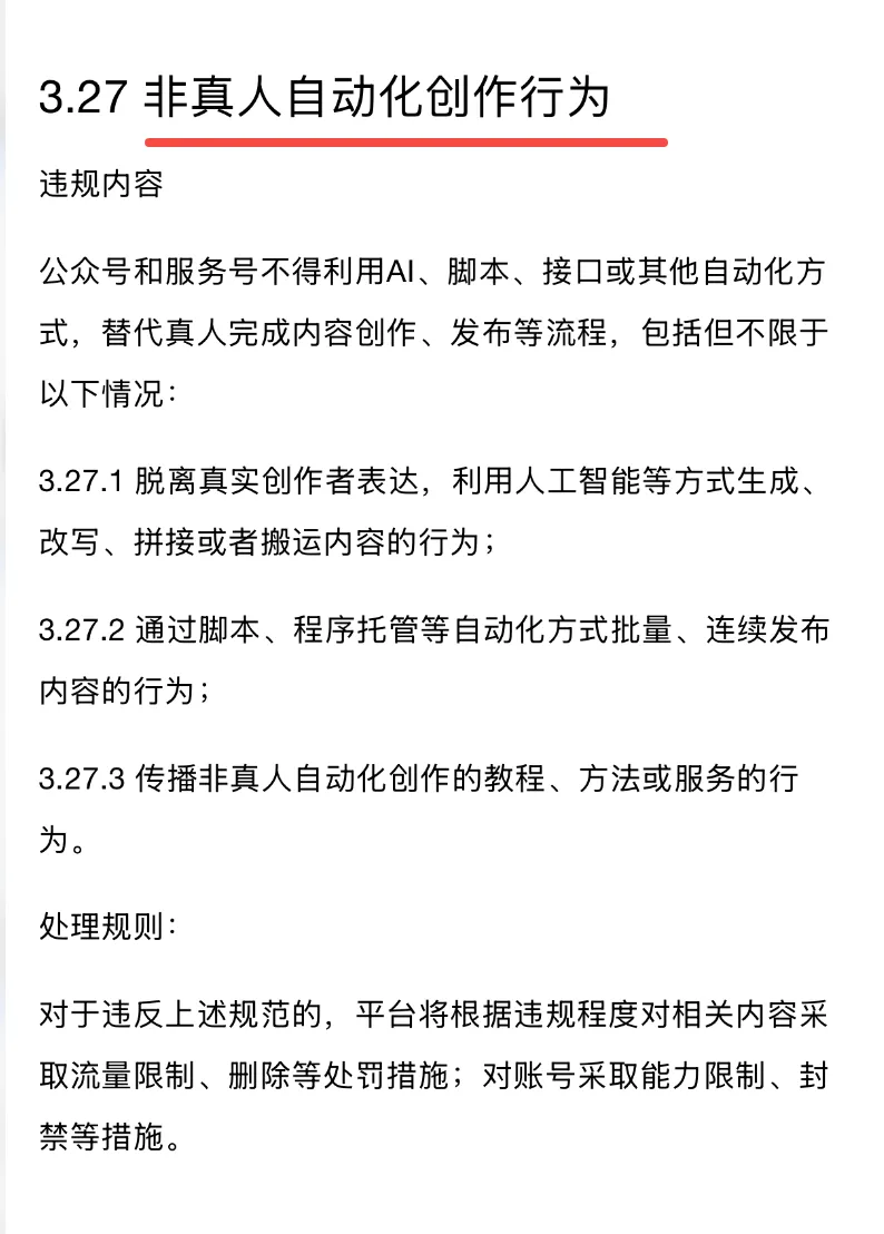 别急,苏米先给大家解读一下,说白了就是“不准用人工智能生成、改写、拼接、搬运,来替代真实创作者的表达,同时也不准用脚本托管,去批量、连续发布内容”。