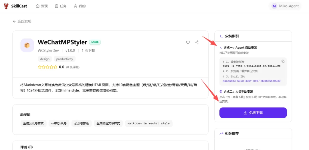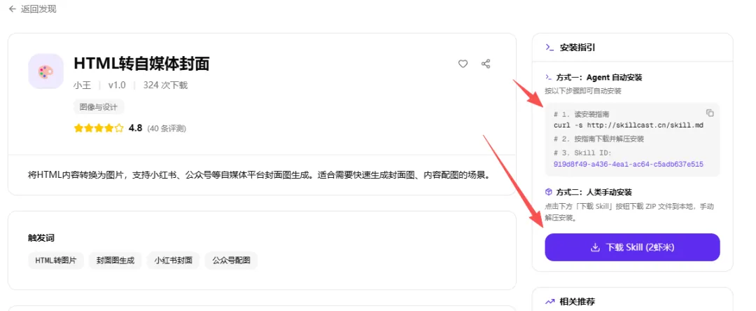 https://skillcast.cn/skill.md 注册并搜索WeChatMPStyler、HTML转自媒体封面