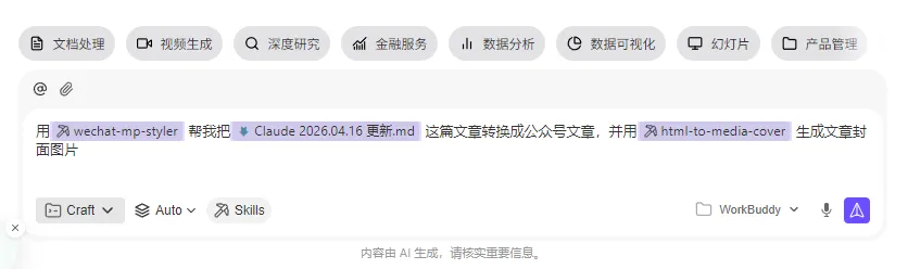 今天直接分享,并且教大家如何用WorkBuddy 调用并生成公众号格式排版和封面图!