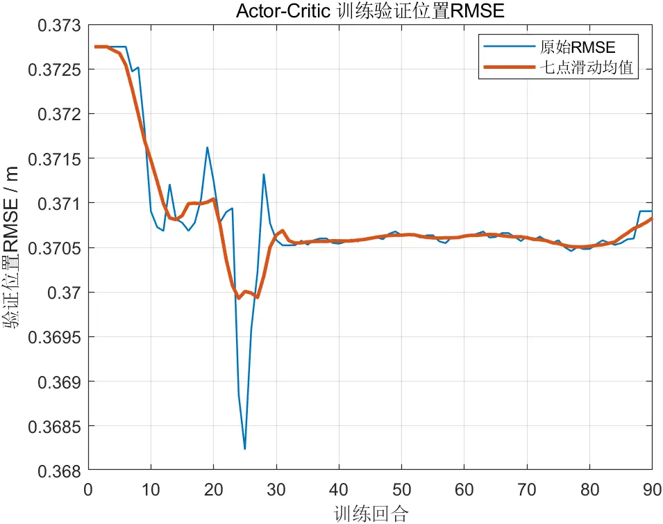 从训练过程看,Actor-Critic策略的验证累计回报呈现先上升后趋稳的特征,位置均方根误差则整体下降并在后期进入较平稳区间。这说明学习过程并非无序探索,而是逐渐形成了能够降低综合代价的策略。虽然提升幅度并不属于极端激进型,但训练曲线已能体现出收敛趋势。对于四旋翼控制而言,稳定提升往往比短期内大幅波动后偶然获得较优值更具工程意义,因为真实系统更关注一致性与可重复性。