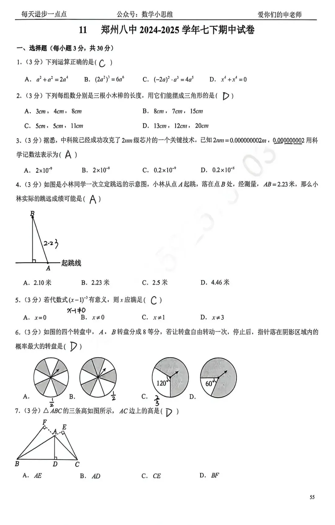 7七下真题集11套郑州八中25年期中pdf下载及讲解