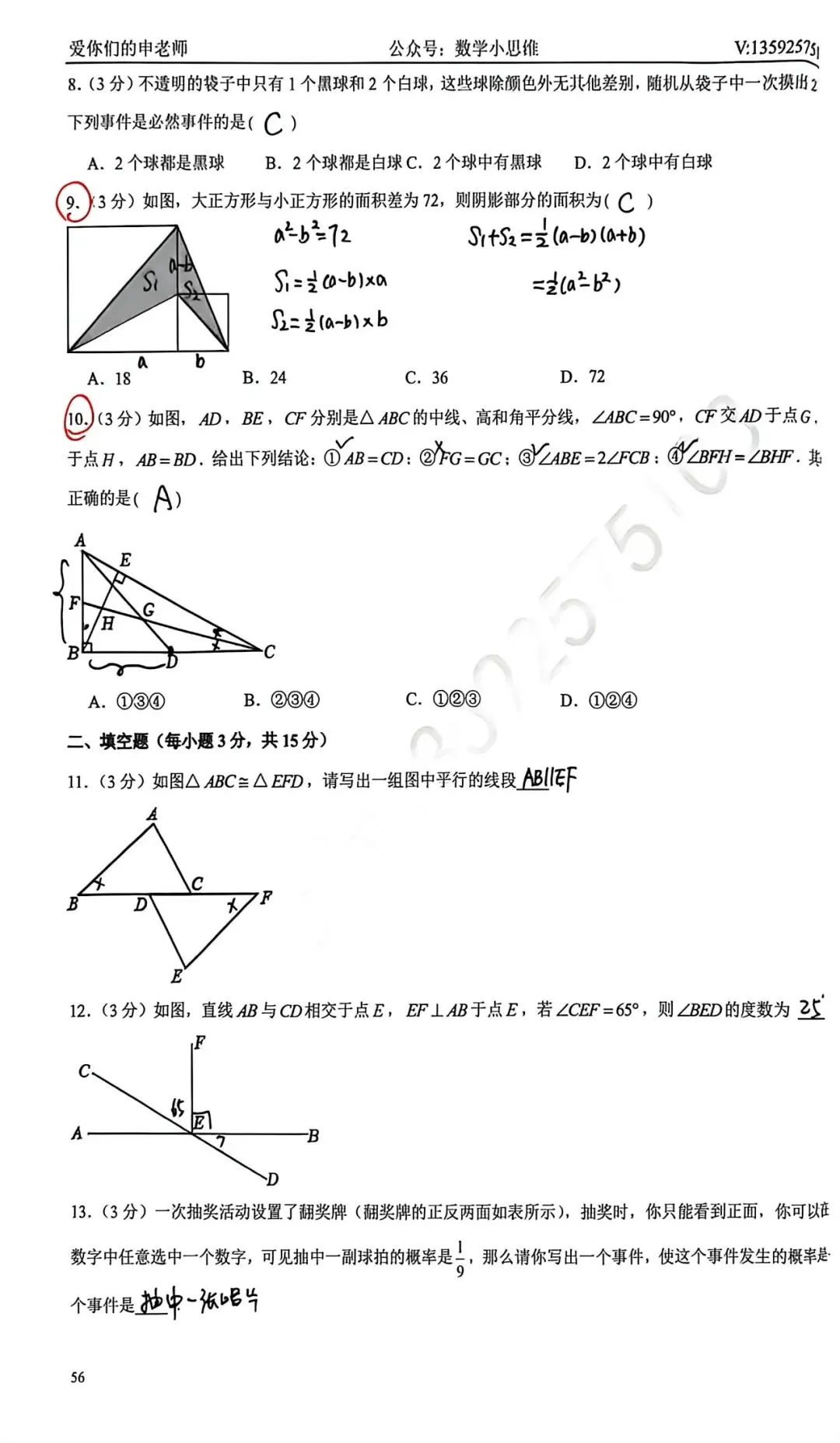 7七下真题集17套省实验中学期中试卷讲解PDF下载(2026版)