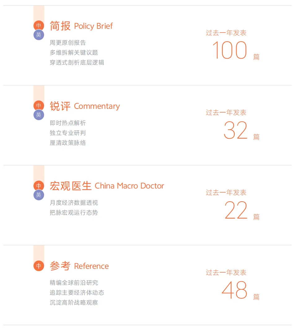“CF40研究”长期聚焦中美经贸、宏观经济、货币与财政政策、人工智能等关键领域,持续开展自主研究,已形成十余项代表性研究专题。