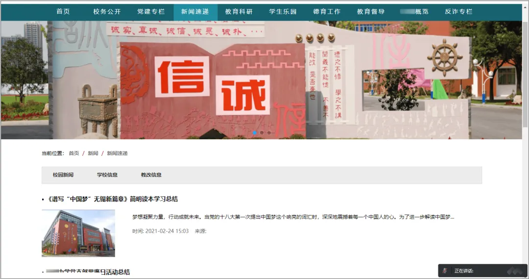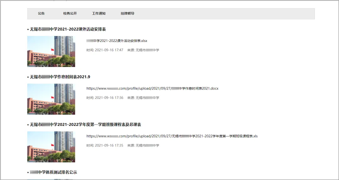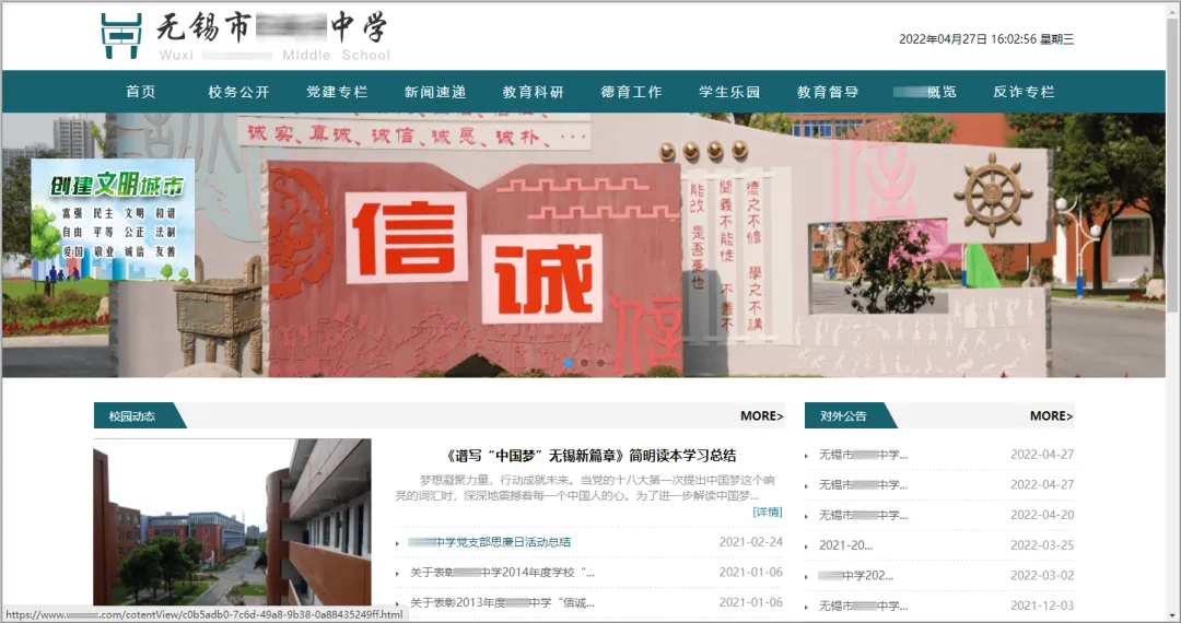 • 案例展示:XX中学需要创建官网向大众展现学校各方面情况,打造完美对外窗口,方便大众了解自己。