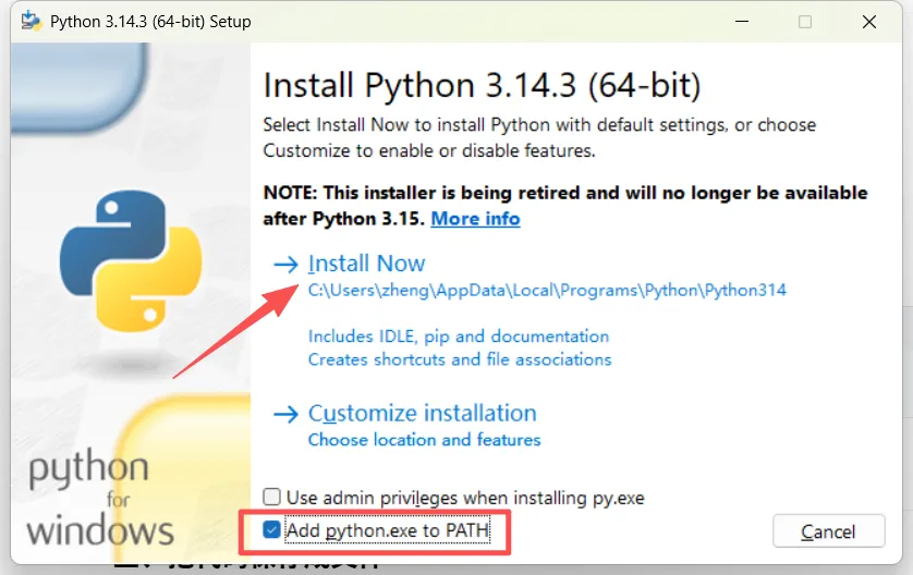 下载完成后,双击安装,路径可以不修改,注意勾选add