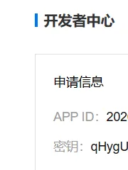 登录成功后可以点击开发者中心,下面显示的ID以及密钥