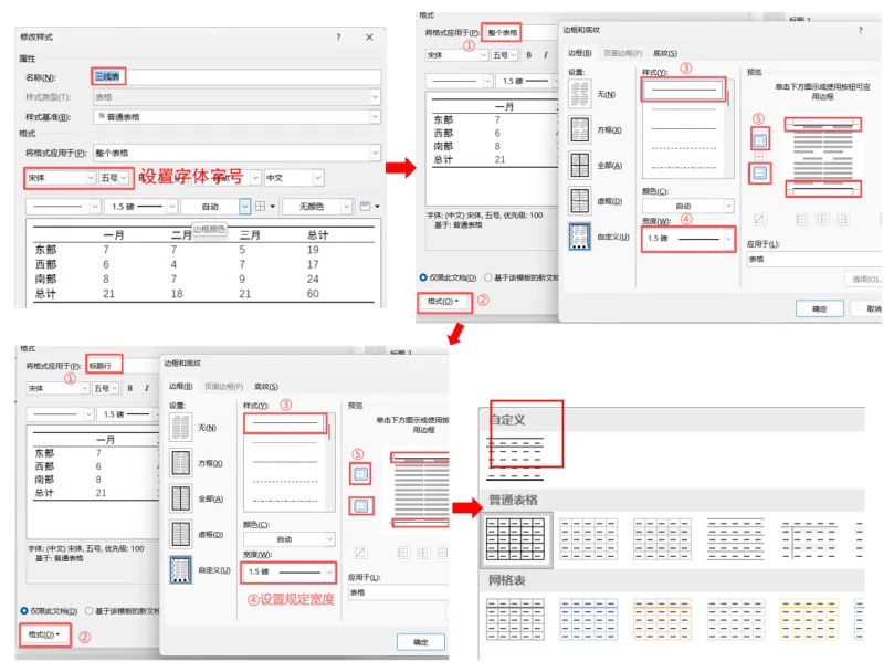 论文表格要求三线表,每次手动画框线太繁琐。点击【表格工具-表设计-新建表格样式】,命名为“三线表”,设置表格边框,后续插入表格直接选中该样式,一键生成标准三线表,边框粗细、间距完全统一。