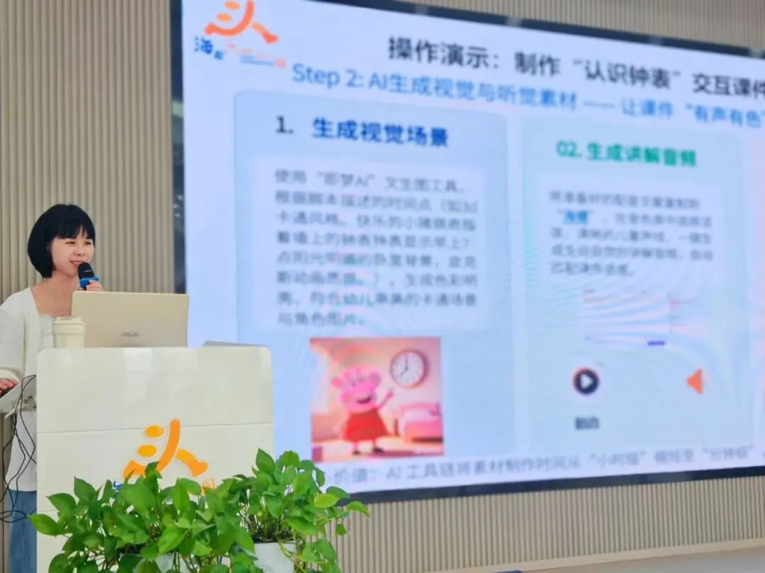 在活动中,宋老师结合自身的实践经验,分享了如何在日常教学与班级管理中运用AI赋能幼儿教育。她通过现场软件操作,生动演示了如何借助“AI+数据循证”推动师幼协同成长。她认为,教师应善用AI辅助教学设计、过程记录与结果分析,让技术真正服务于教学与管理的优化,实现教育的智能迭代与儿童发展的科学支持。