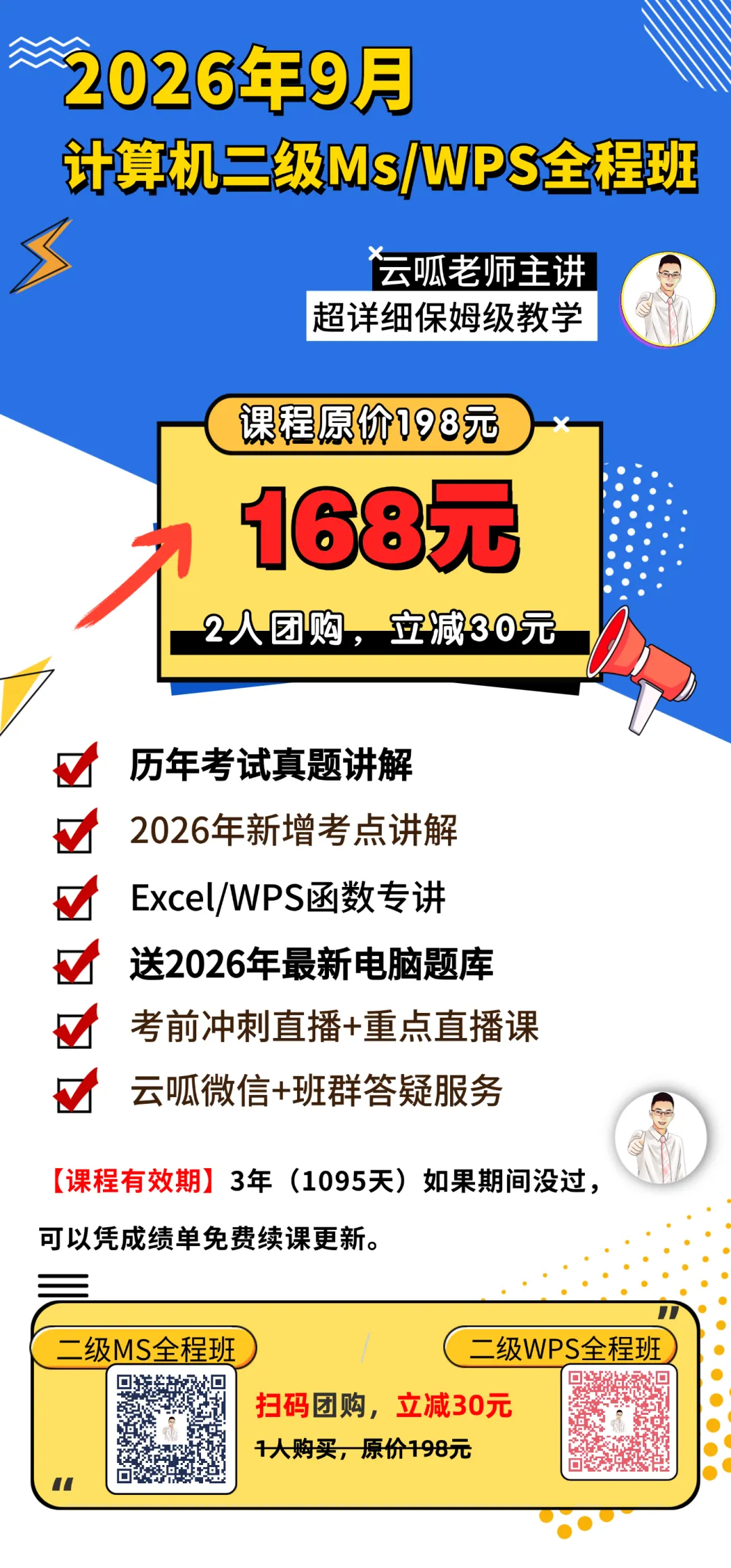 『2026年9月云呱计算机二级Ms/WPS全程班』
