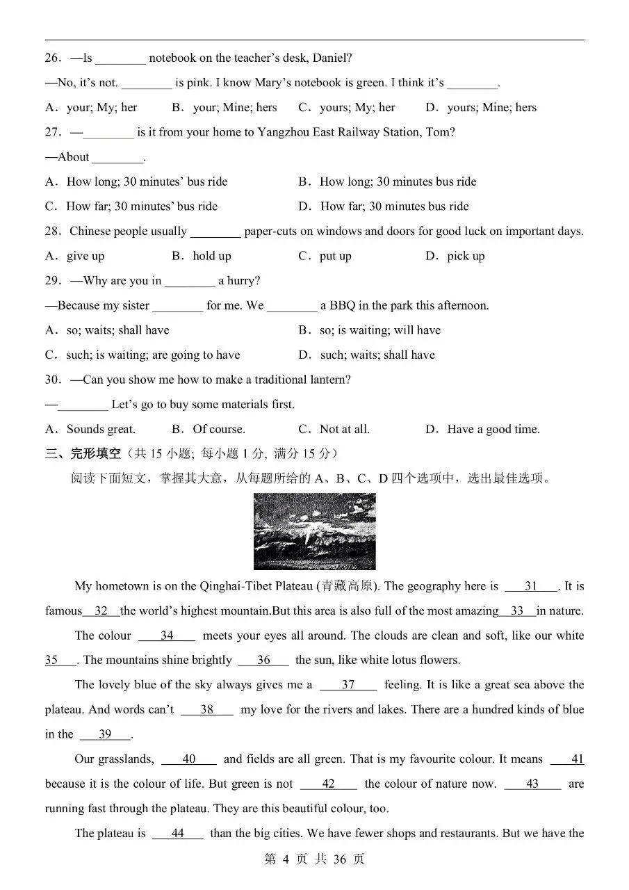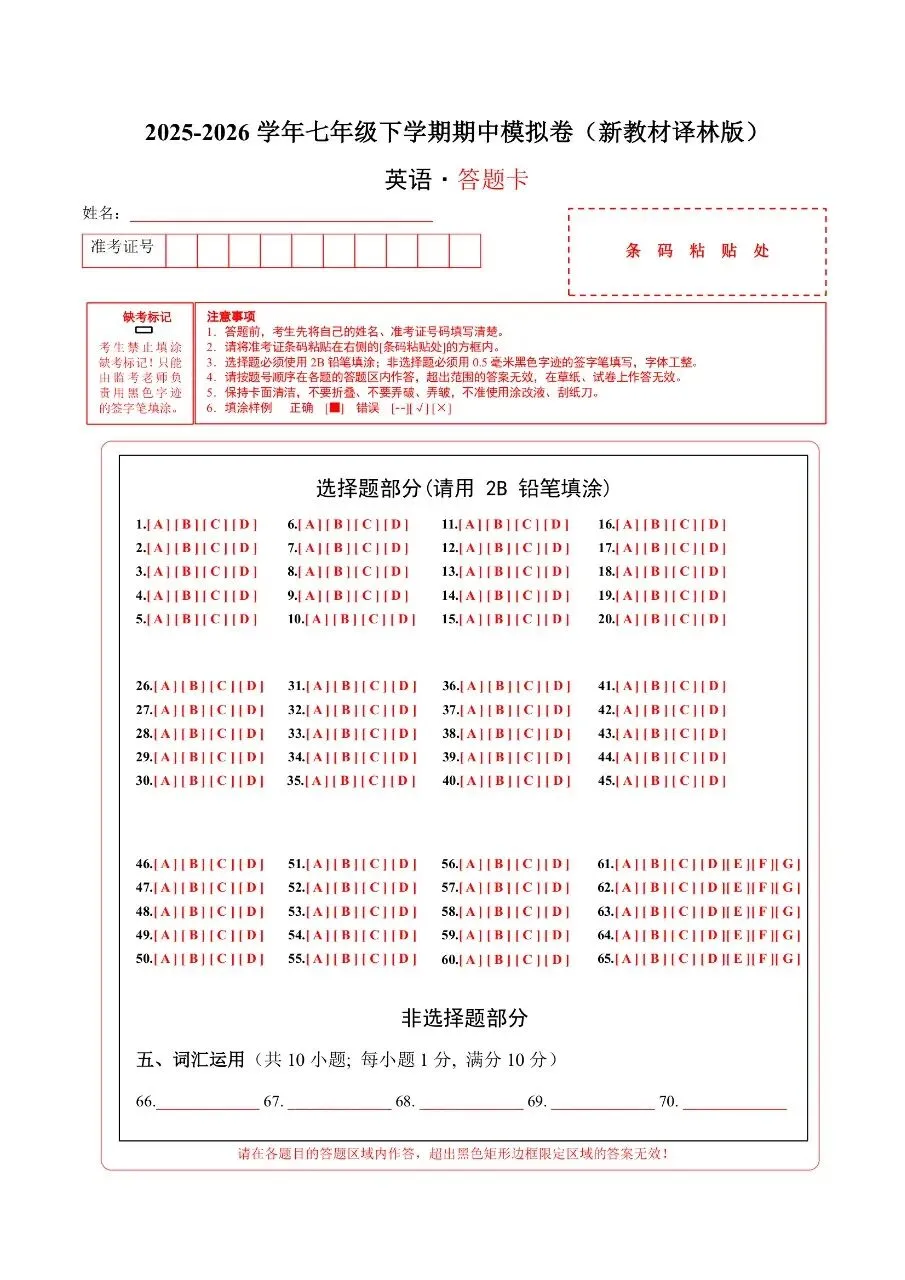 七年级下册英语译林版期中模拟测试卷含答案可打印