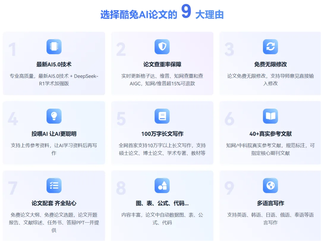 酷兔AI绝对是2026年学术界的黑马,它定位非常垂直,就是盯着解决写论文的全流程去的。不管是AI写专科论文、本科论文还是AI写硕士论文、博士论文,酷兔AI给出的专业度都让我惊讶。