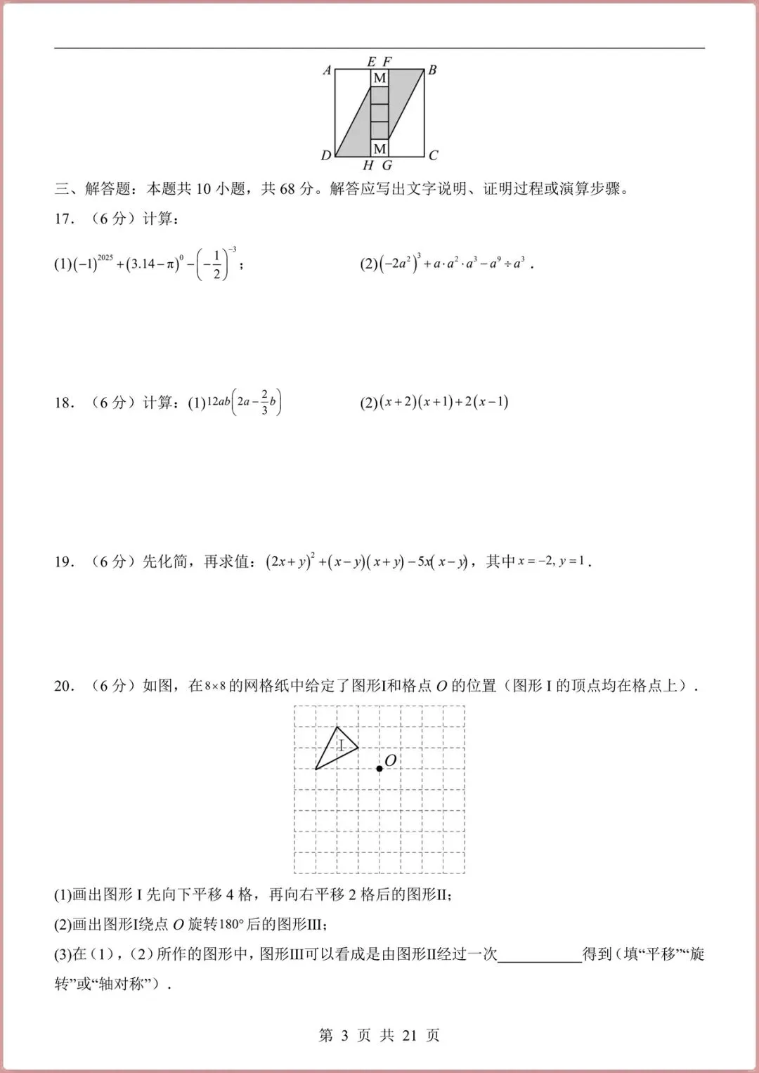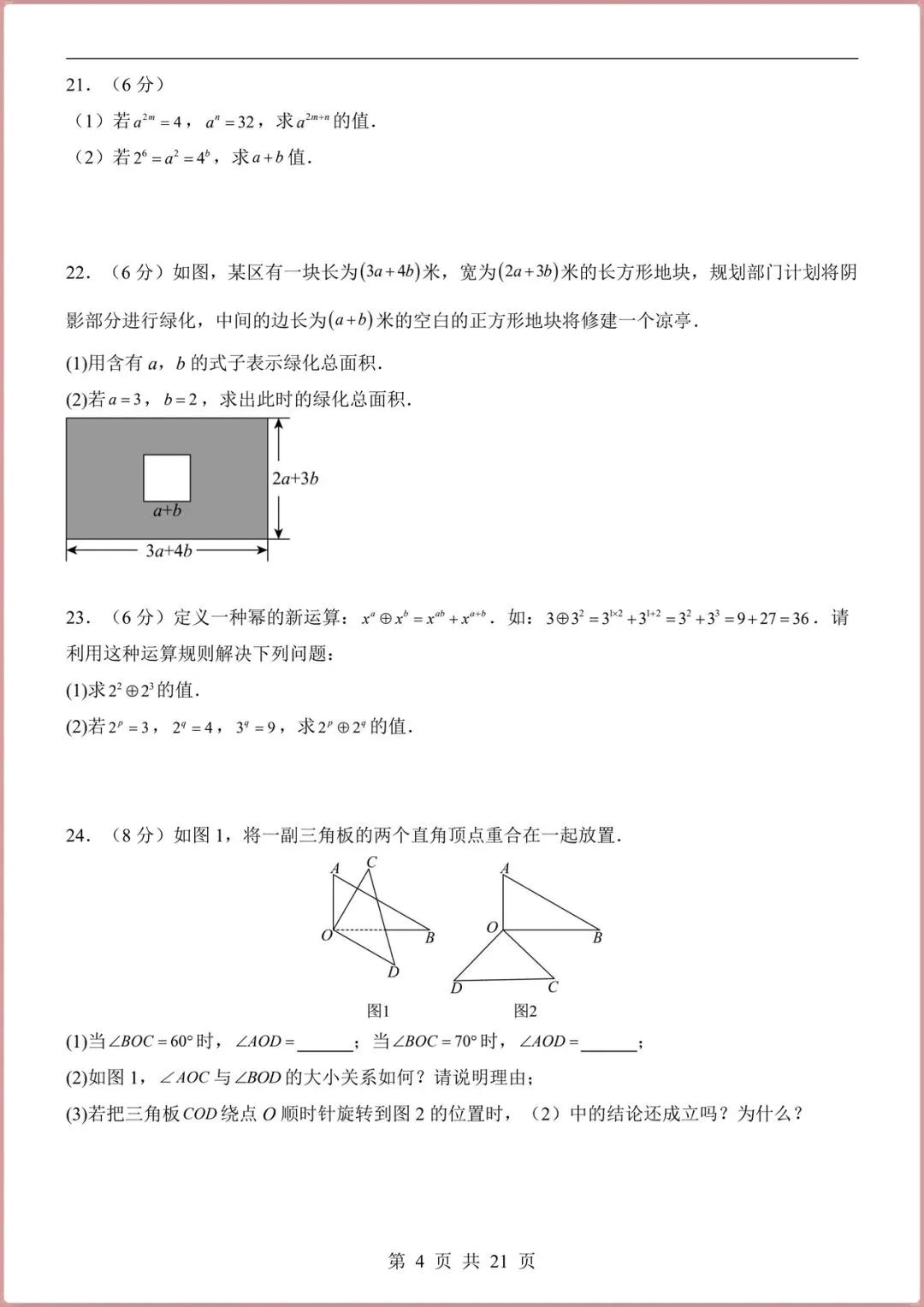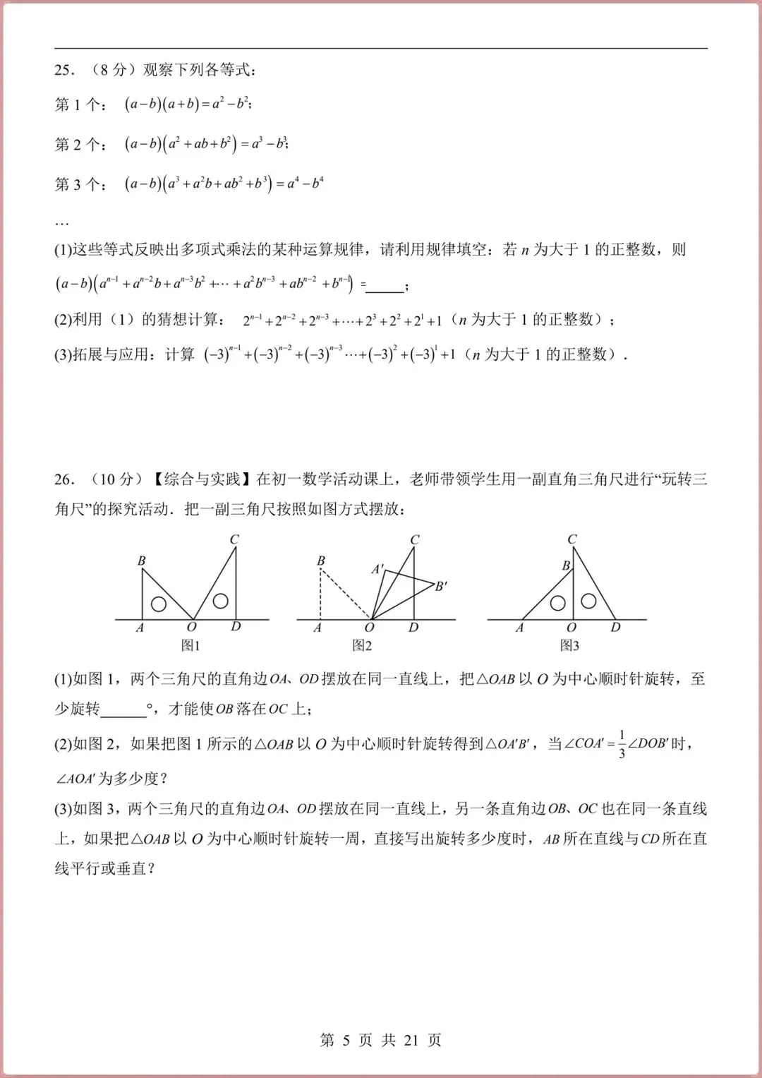 2026新(苏科版)七年级下册数学期中试卷+解析(拔尖+培优卷)多套,电子版可打印!