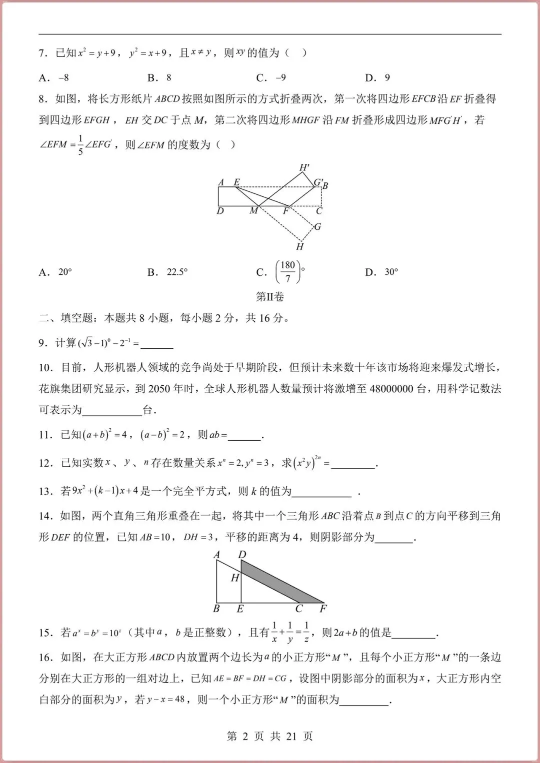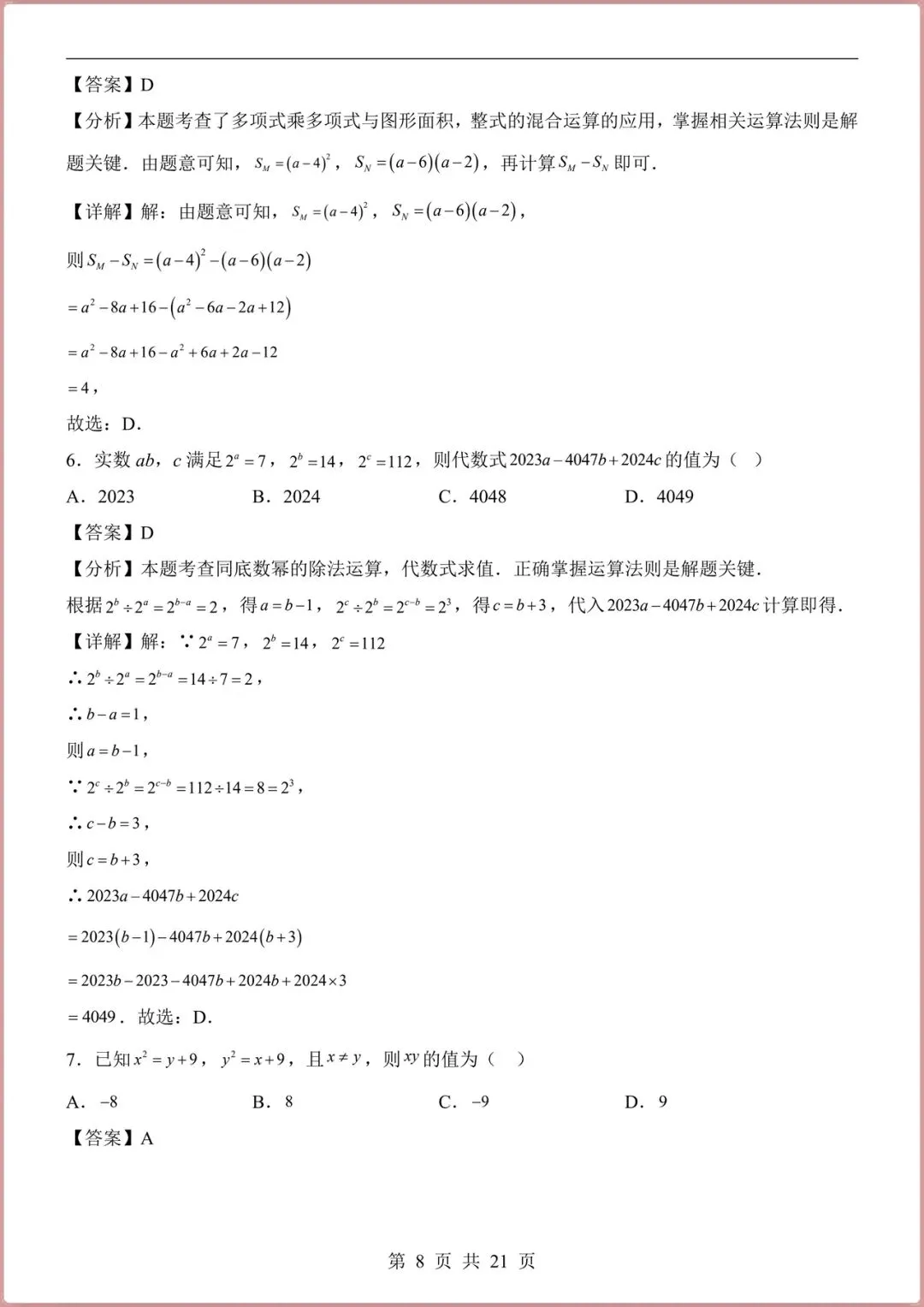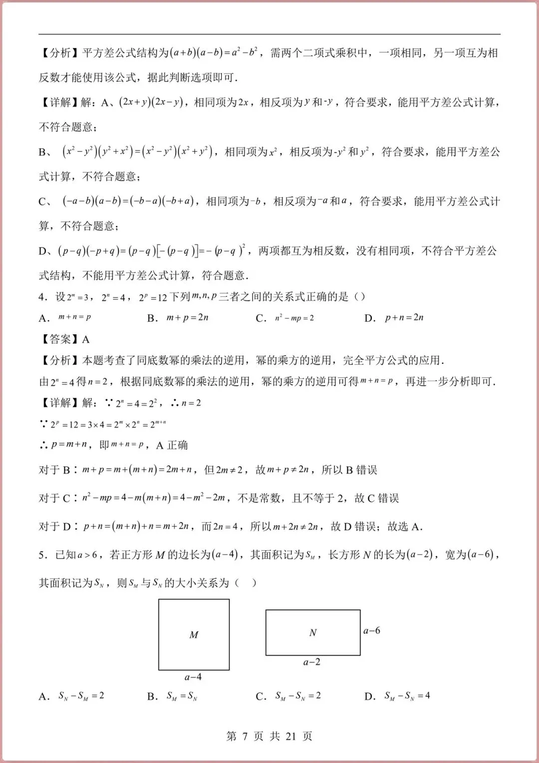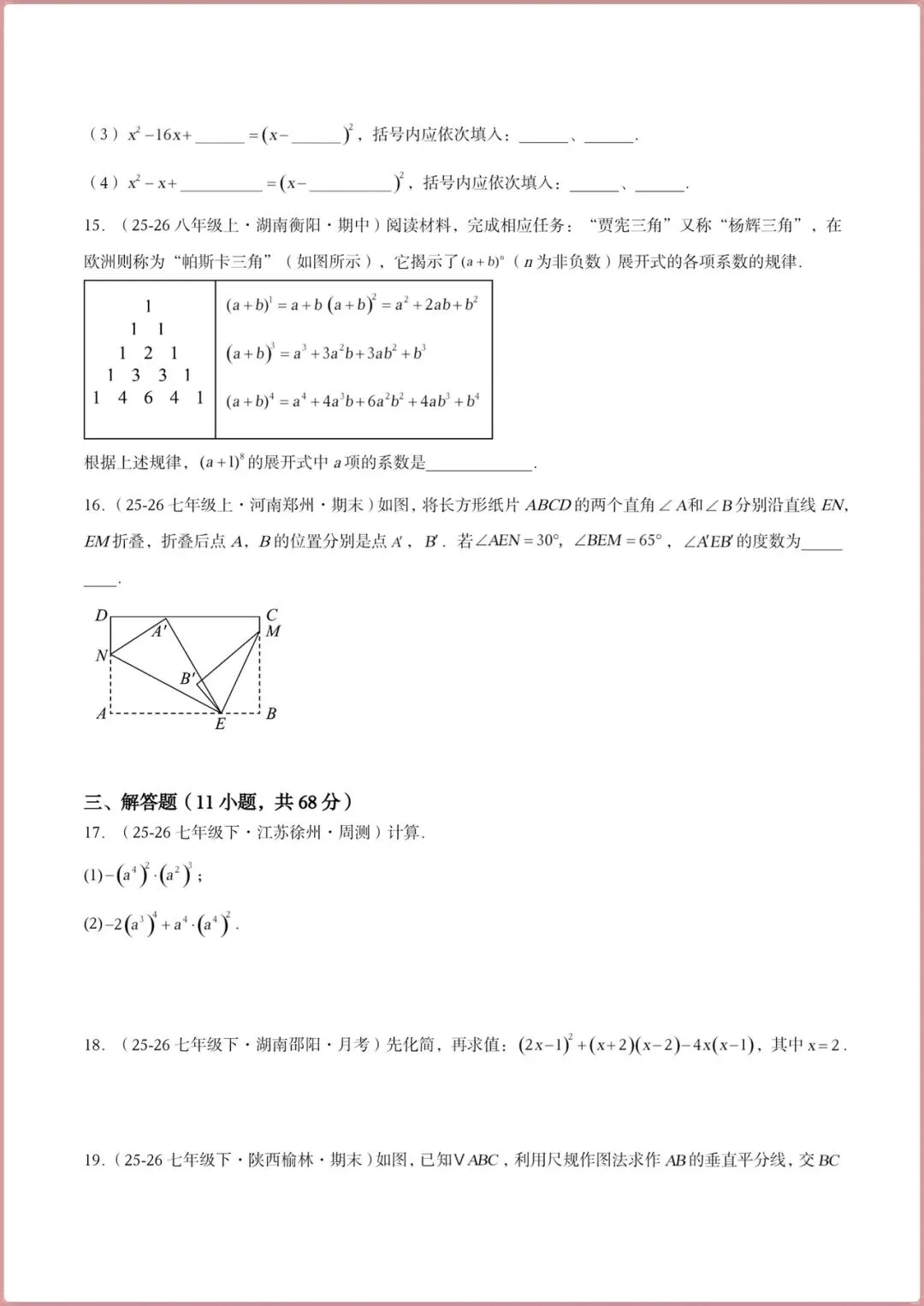 2026新(苏科版)七年级下册数学期中试卷+解析(拔尖+培优卷)多套,电子版可打印!