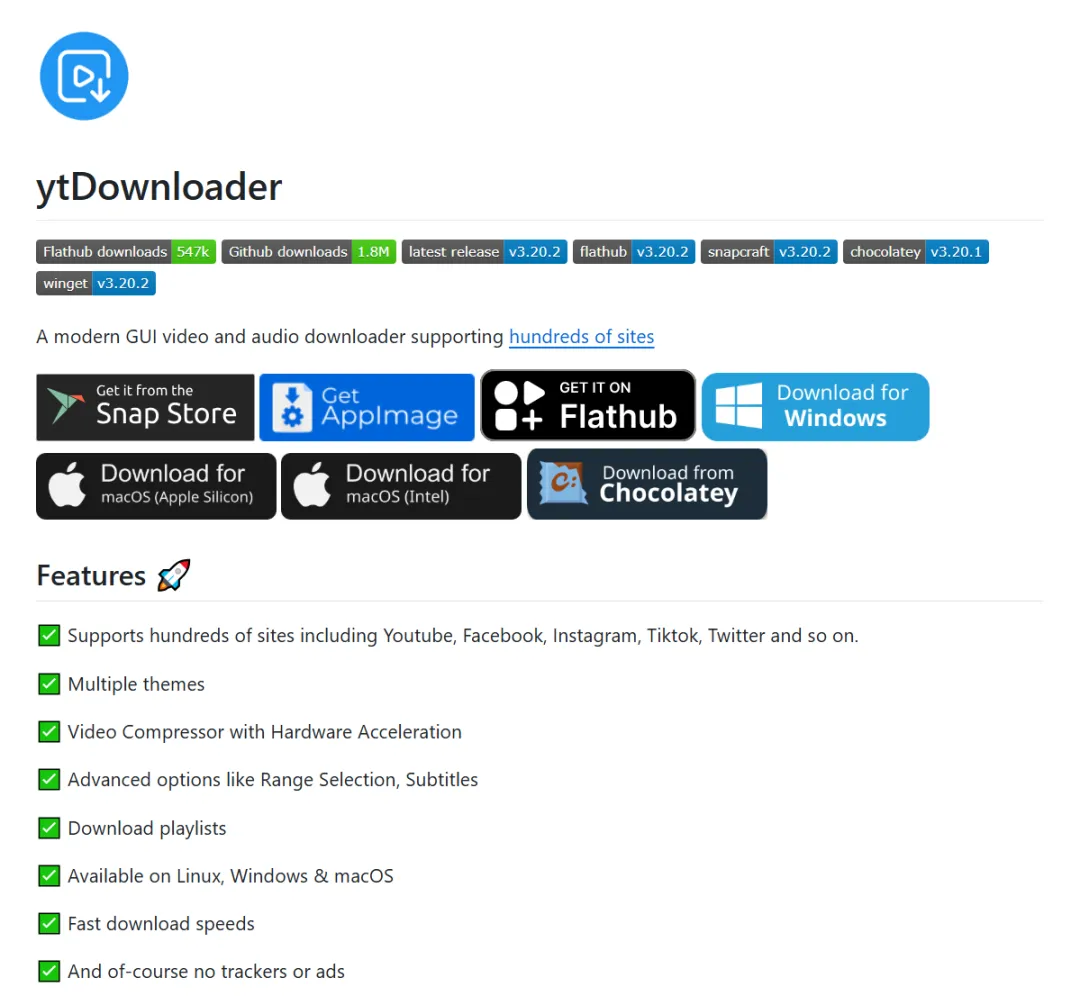最近在GitHub上闲逛,上挖到一个9.3k stars 项,一款很强大的视频下载工具——ytDownloader,马上分享出来: