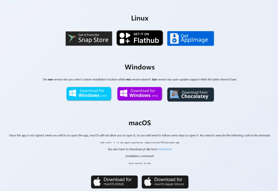 工具完全开源免费,可以下载YouTube、Facebook、TikTok、Instagram、推特等网站的视频、音频。