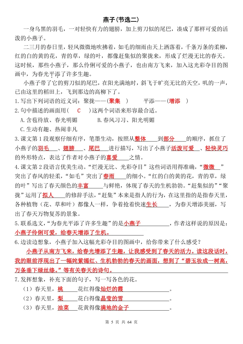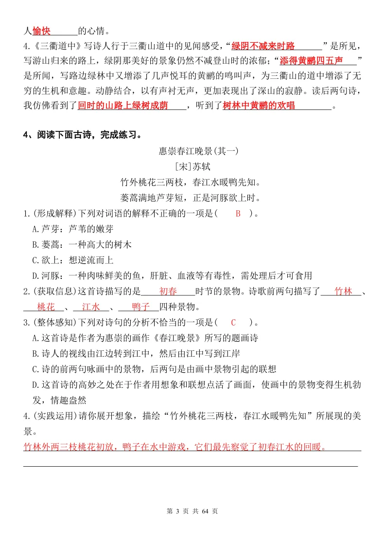 26春人教部编版三年级下册语文《同步课内阅读理解+课外阅读理解每日一练|常考题型专项训练》共64页(附答案)完整可打印