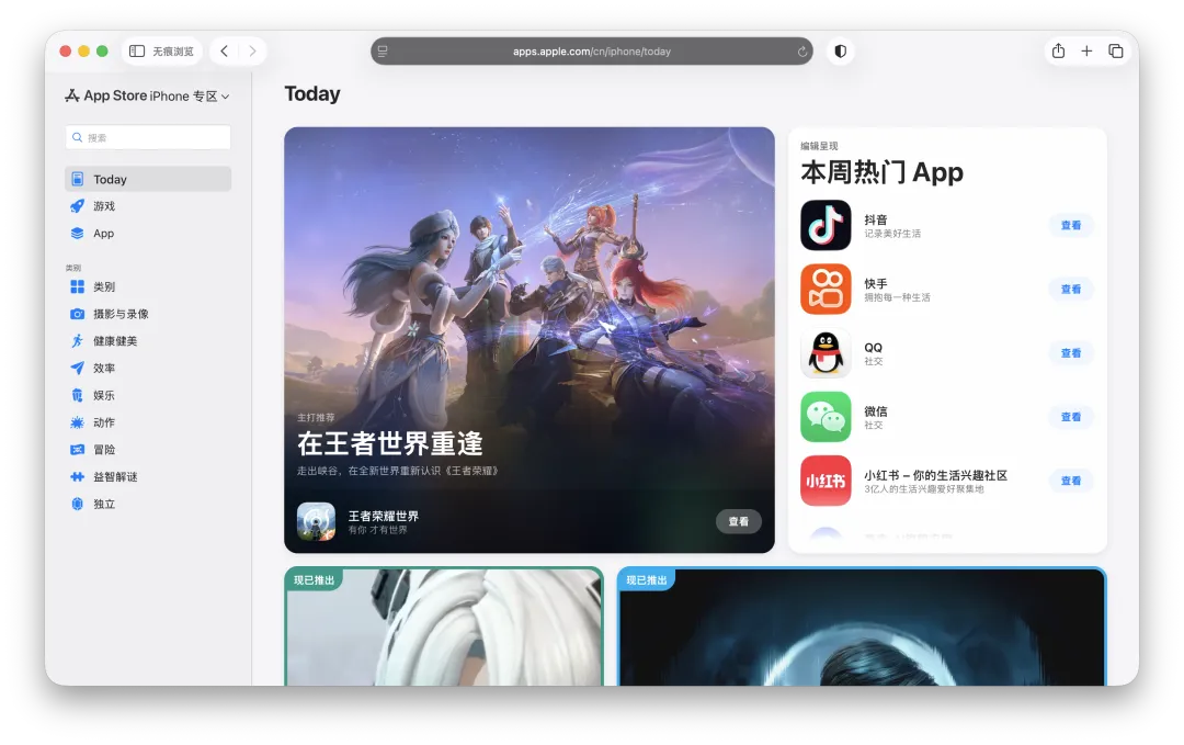 不过坏消息来了!最近陆续有网友发现,无法直接查看外区网页版 App Store 了,使用国内 IP 浏览外区 app 会被苹果强制跳转到国区 Today 的首页,网址如下: