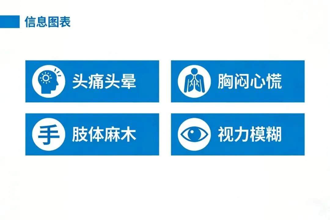 这是大家最警惕的症状,高血压是脑梗、中风的主要诱因,血压波动过大,会损伤脑血管,导致脑部供血不足,就会出现手脚发麻、拿不住东西、说话含糊不清、走路跑偏等前兆,一旦出现就特别危险。