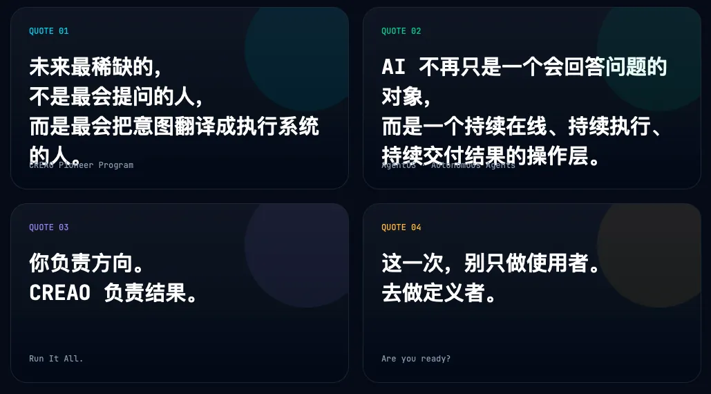 CREAO Pioneer Program,面向的就是这批人。那些不想只围观浪潮,而是想亲手塑造浪潮的人。