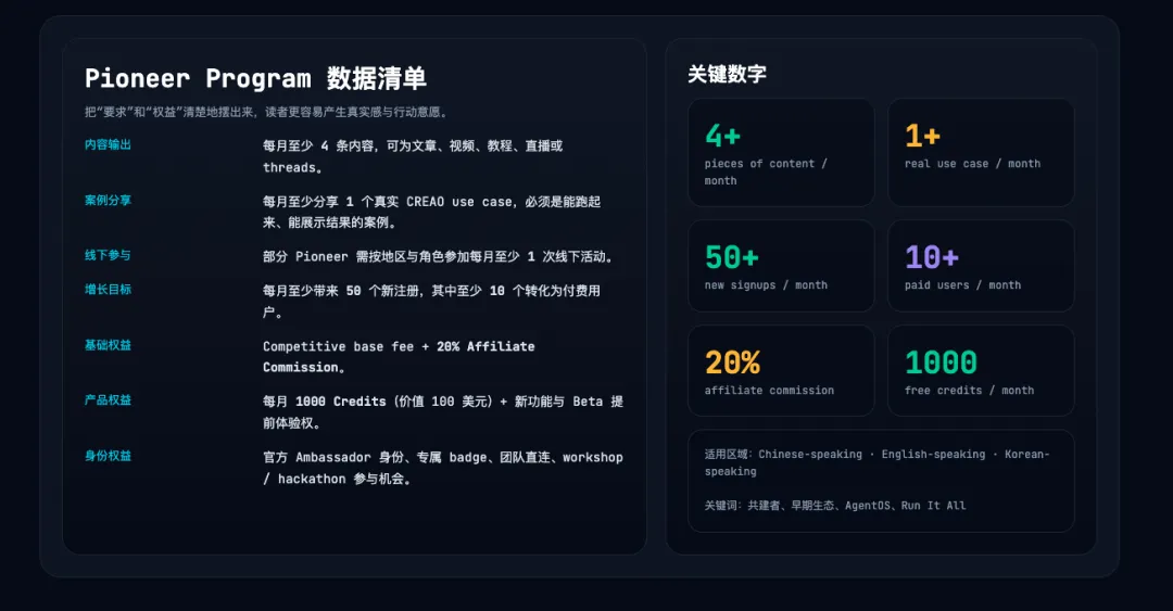CREAO Pioneer Program,本质上不是一个普通的“推广计划”。它是在找一批真正定义下一代 AI 工作方式的人。