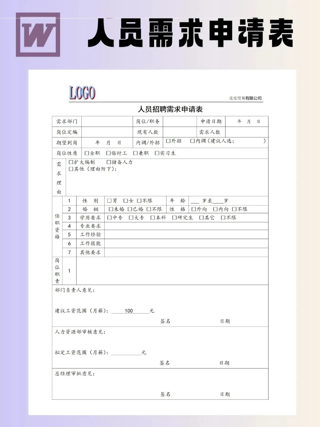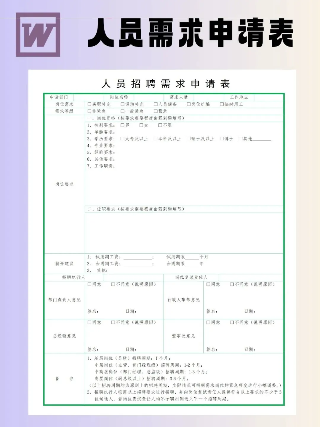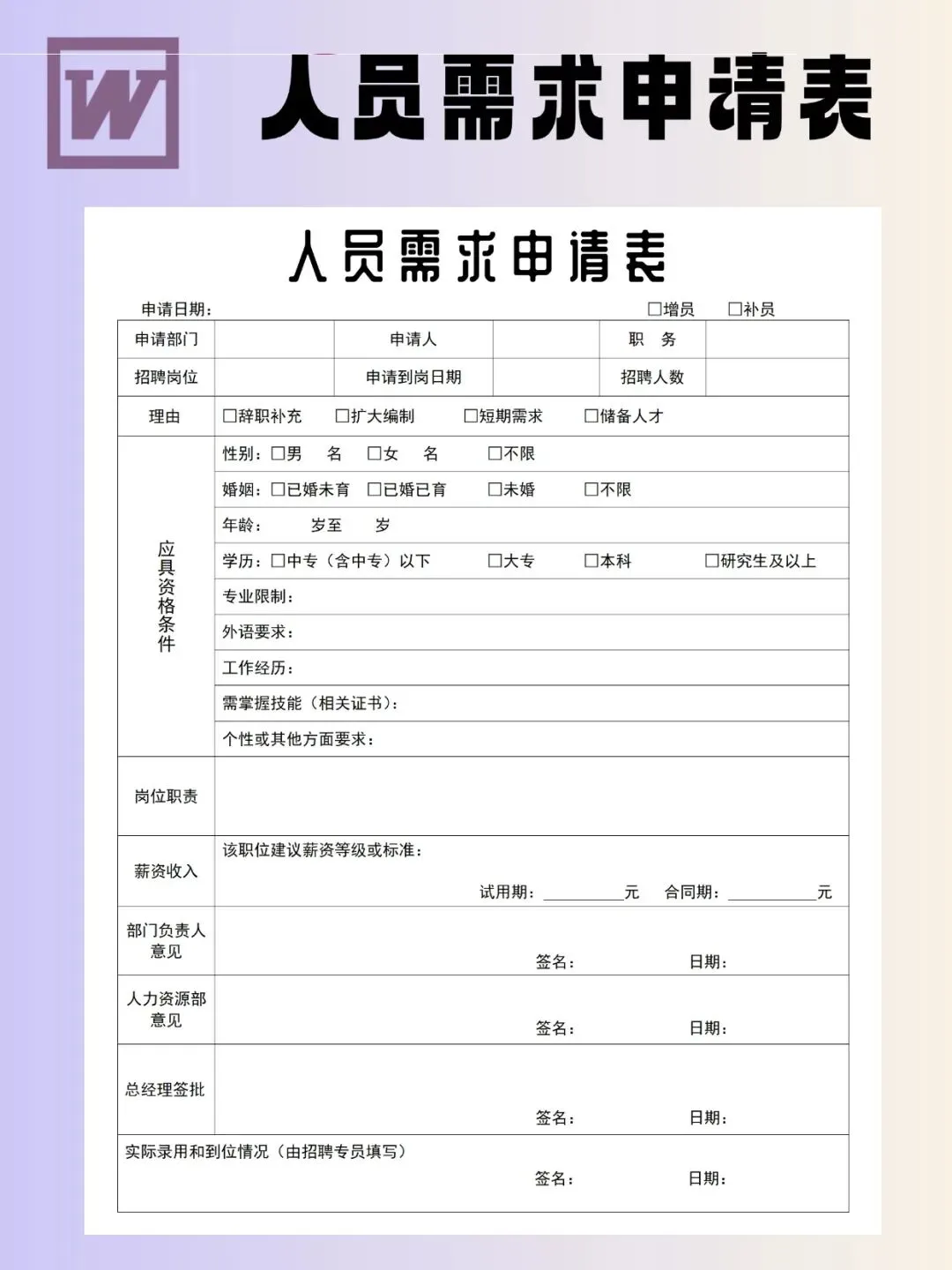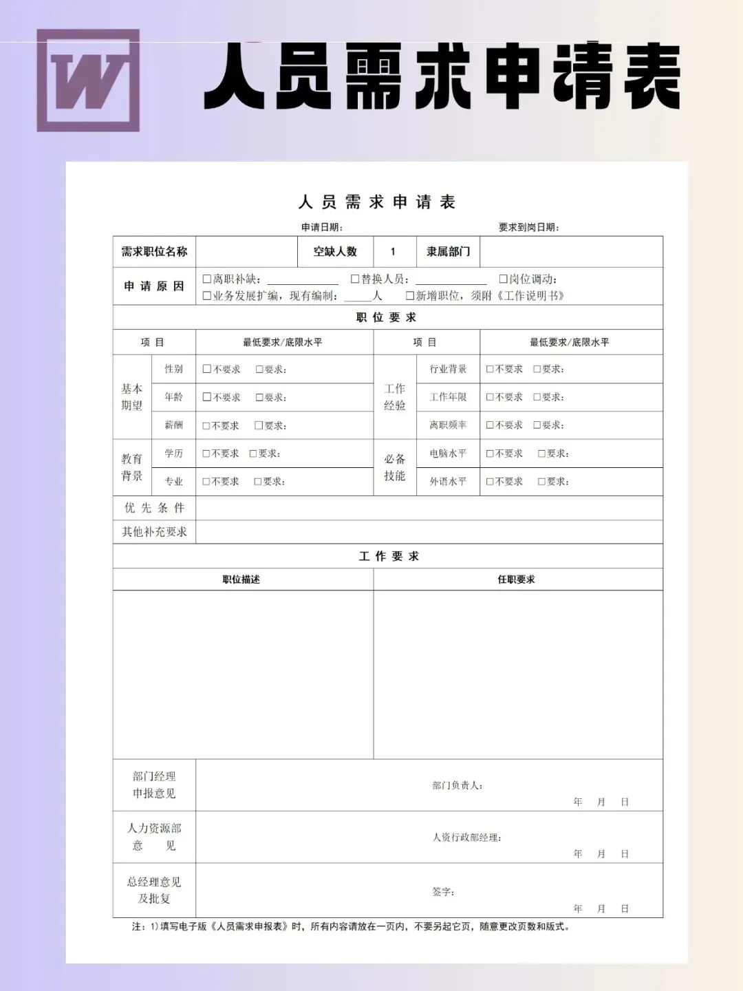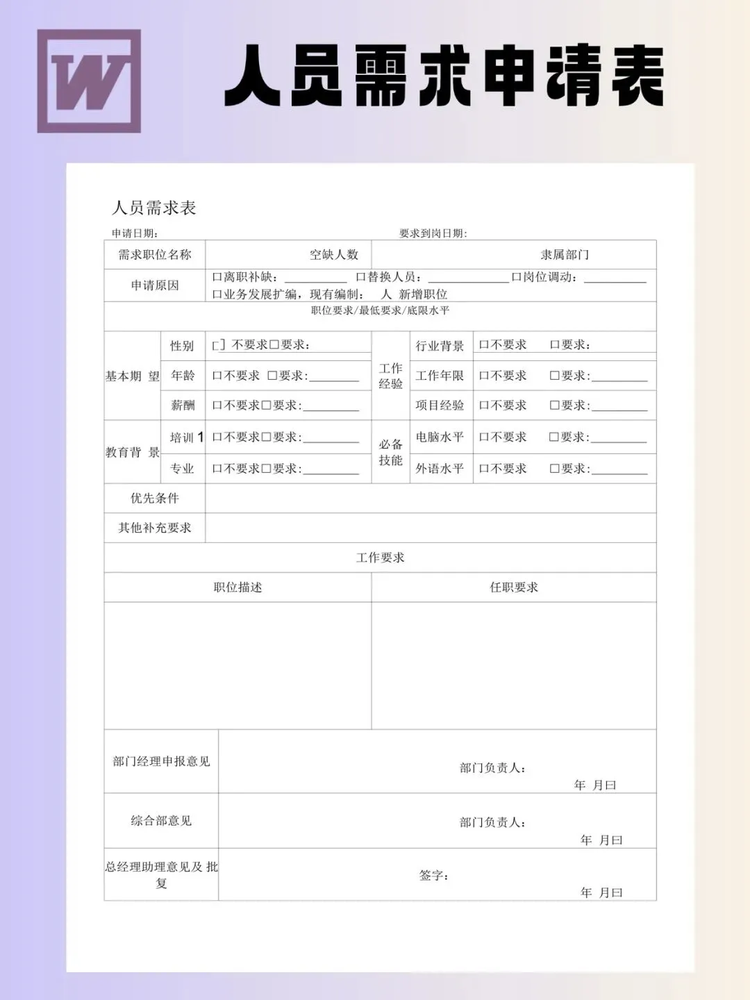 人员需求申请表模板