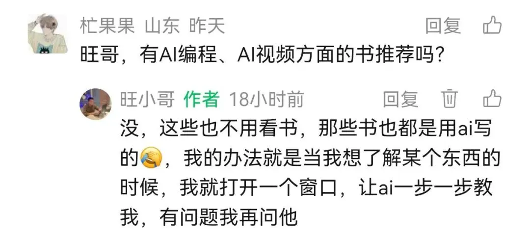 我直接跟他说:不用买任何书,也不用买任何课程,直接让Ai教你用Ai即可,