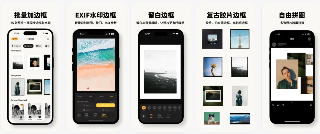 🗂️ 软件简介:支持批量照片加边框、拼图和相机照片水印工具。 -