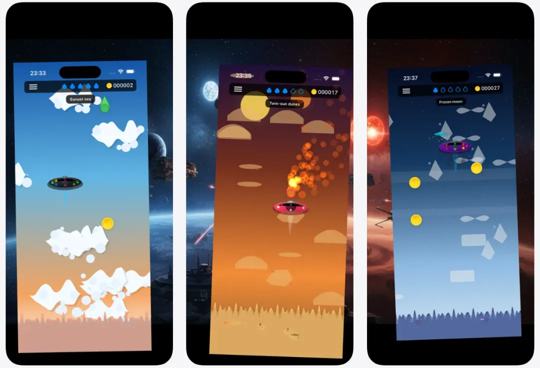 🗂️ 软件简介:超上头战术街机射击游戏。玩家需要操控水滴打UFO,火焰、冻结、幸运三种战术玩法。 -