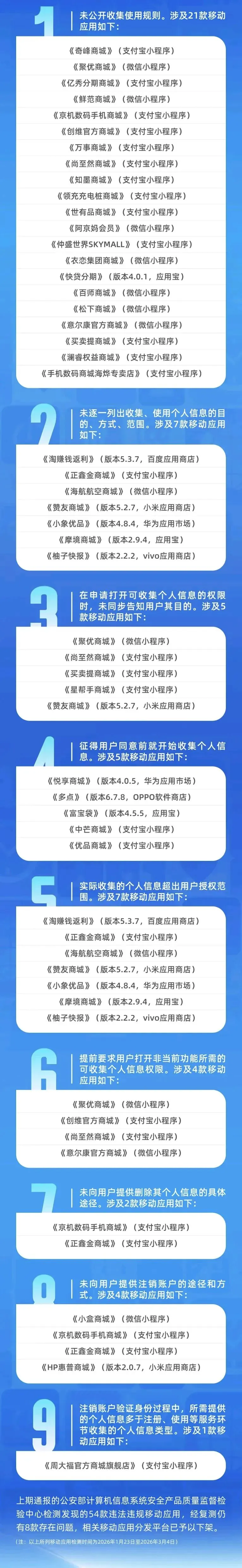 经公安部计算机信息系统安全产品质量监督检验中心检测,37款移动应用存在违法违规收集使用个人信息的问题。