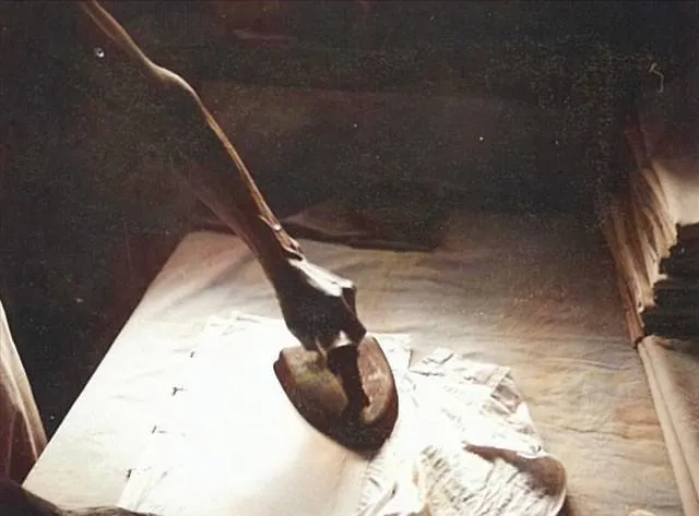 这个铁疙瘩叫火烙铁,用木头柄当把手,压在炭火里烧得通红,拿出来在衣服褶皱上来回推,咝啦啦的声儿、冒的那点热气都是小时候的背景音,姥姥烫棉袄最拿手,她总是说,“这货好使,烫出来不带褶”,现如今电熨斗一插电,衣服一会就挺括了,那时候得看人手艺,动作稍慢点衣料就要焦了。