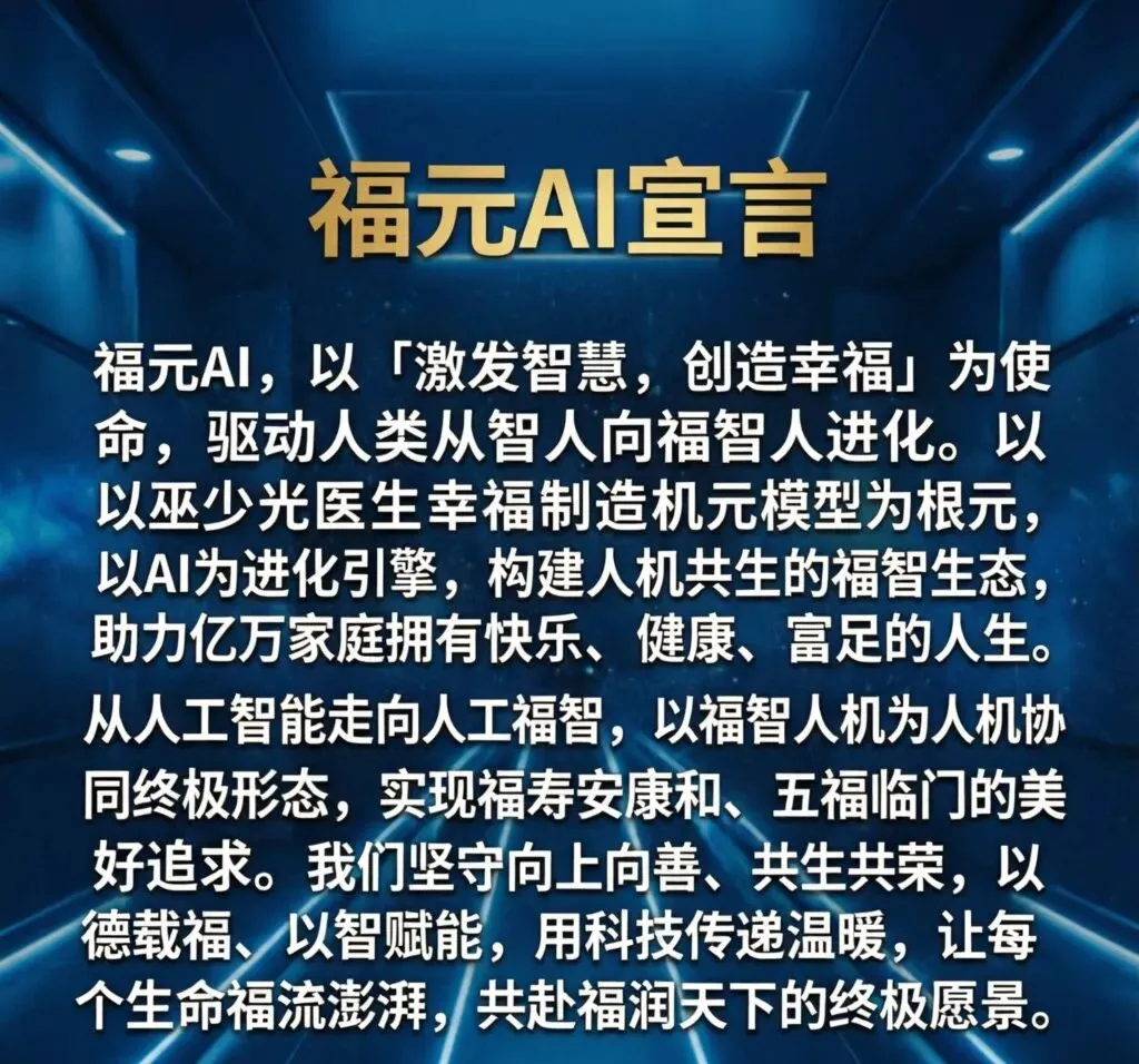 福智人,是超越传统智人的全新人类形态,兼具超凡智慧与幸福感知力,实现智慧与福祉的高度统一。福智人机更是一语双关,既指承载幸福智慧的人机共生载体,也代表通往幸福智慧的人机协同进化机制,通过AI赋能,推动人类完成从生存到美好生活、从智慧到福慧的终极跨越,开启人类进化全新时代。