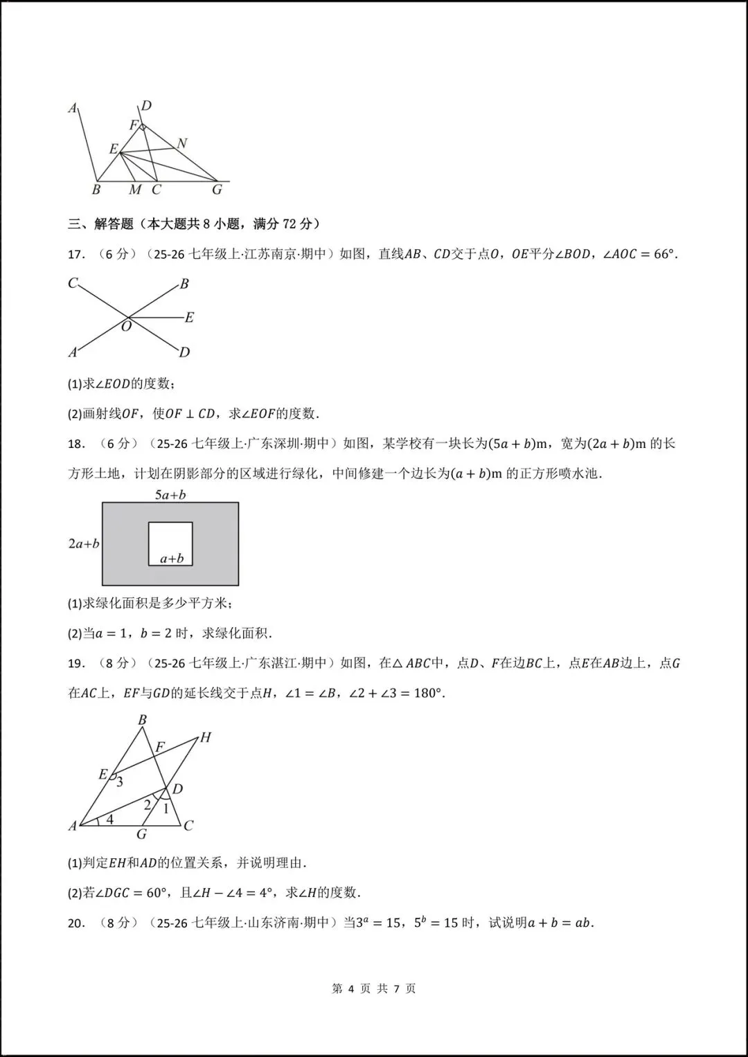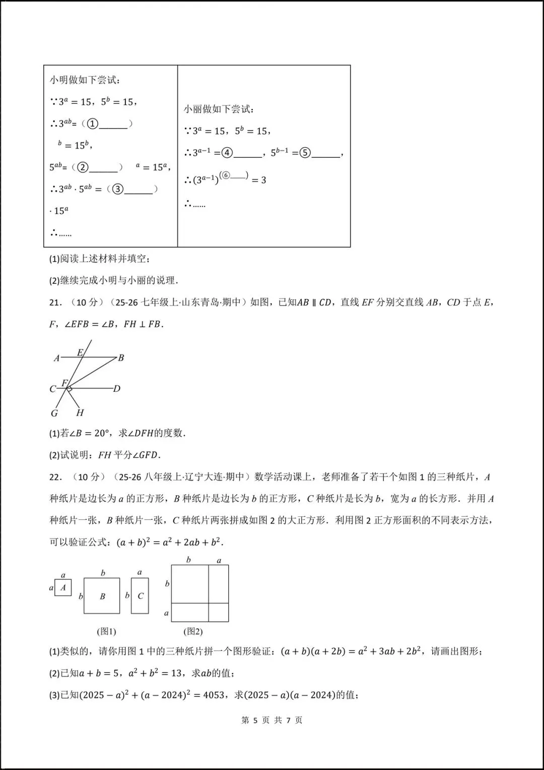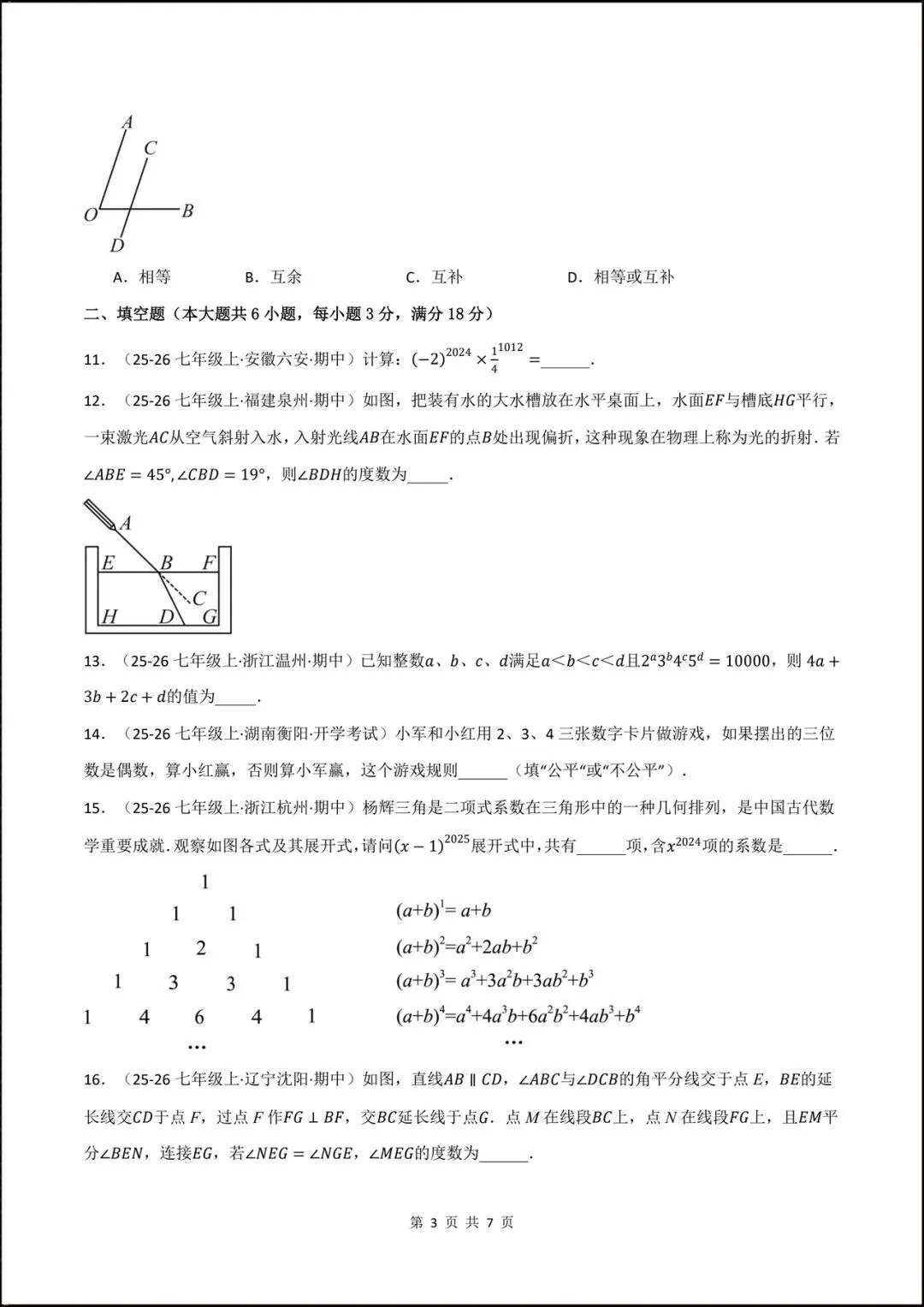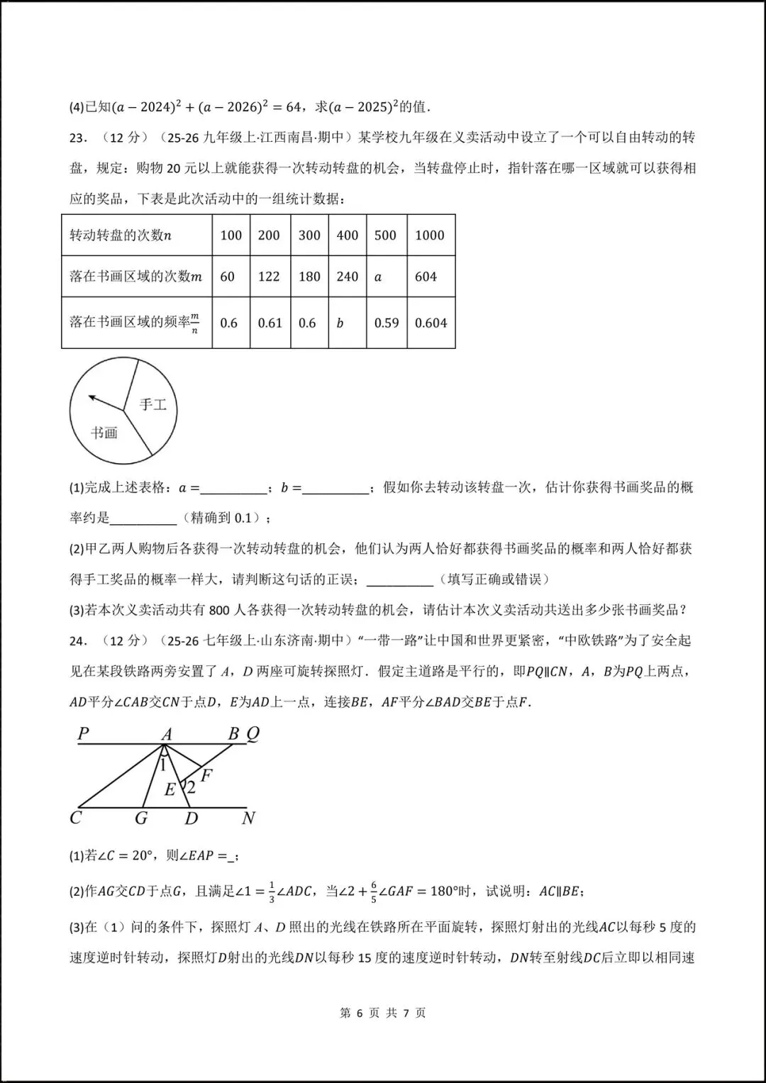 2026新北师大版七年级下册数学试卷(各单元测试卷+月考卷+期中卷+期末卷整合)完整可打印!