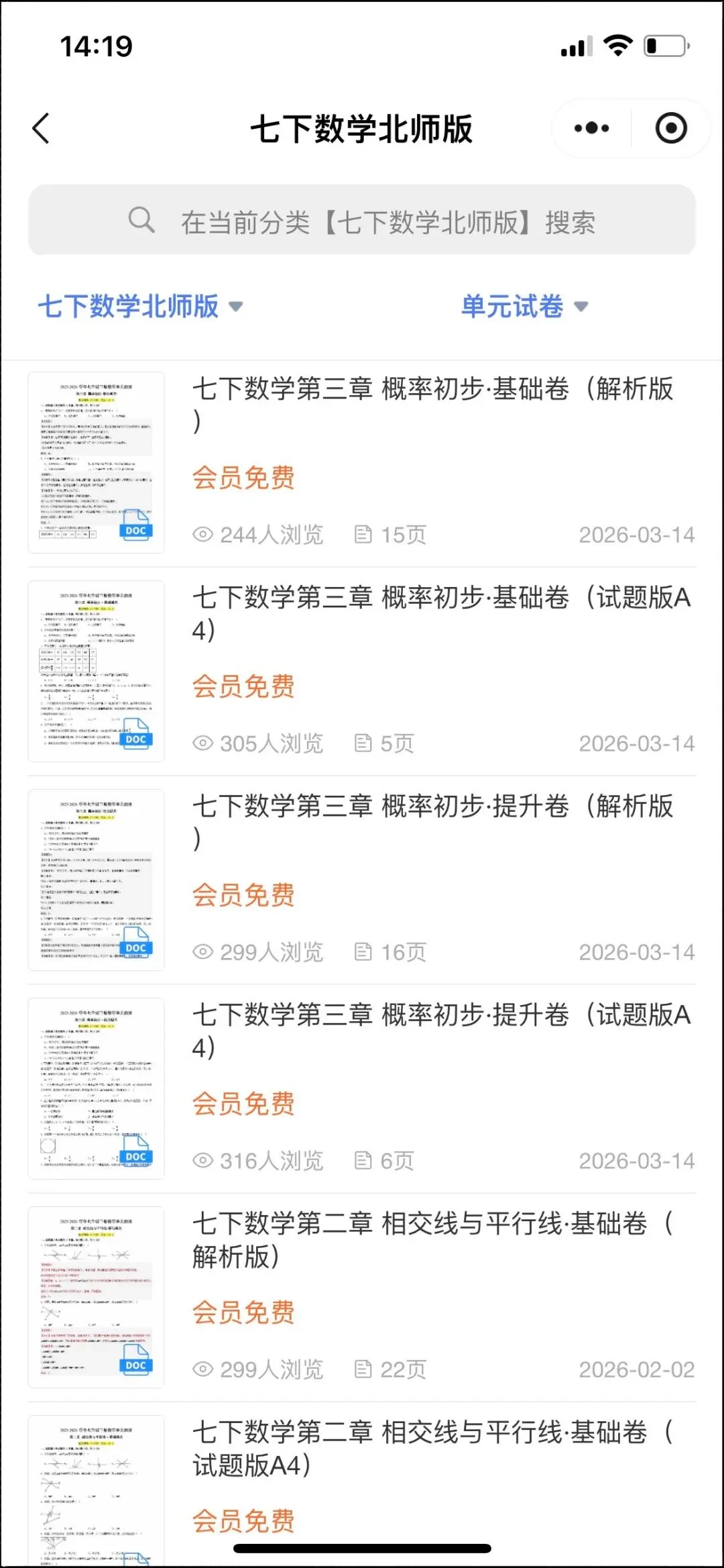 今日老师精心给大家整理了: 2026新北师大版七年级下册数学试卷(各单元测试卷+月考卷+期中卷+期末卷整合)完整电子版可打印! |
