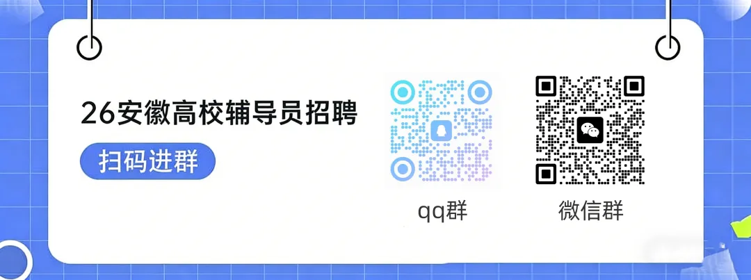 本公众号分享安徽高校教师/辅导员/行政岗等招聘动态、详细岗位信息、精准考情资讯。