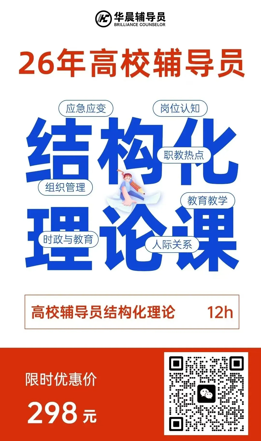 👉报名辅导员1v1面试班,即赠送价值298元的结构化理论课(可单独购买),助力夯实面试理论基础。