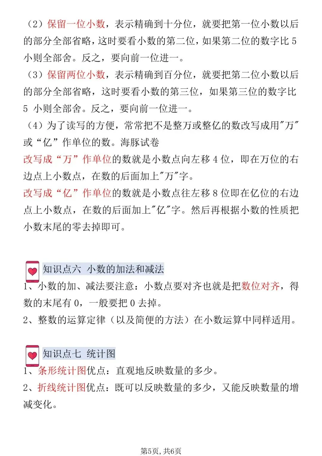 内容按单元顺序归纳,条理清晰、重点突出,涵盖四则运算、运算定律、小数的意义与性质、三角形、小数加减法、图形的运动、平均数与条形统计图、数学广角 —— 鸡兔同笼全部单元知识。语言简洁易懂,重点内容加粗标注,公式与规律一目了然,帮助学生快速构建知识框架、查漏补缺、高效复习。