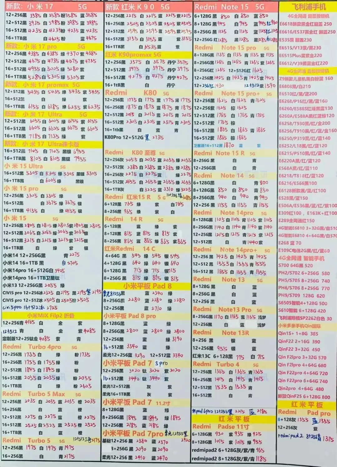 【2026年4月18日报价】深圳全新安卓手机、平板等产品批发报价