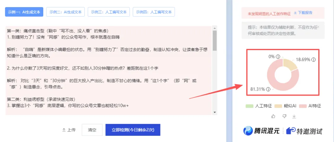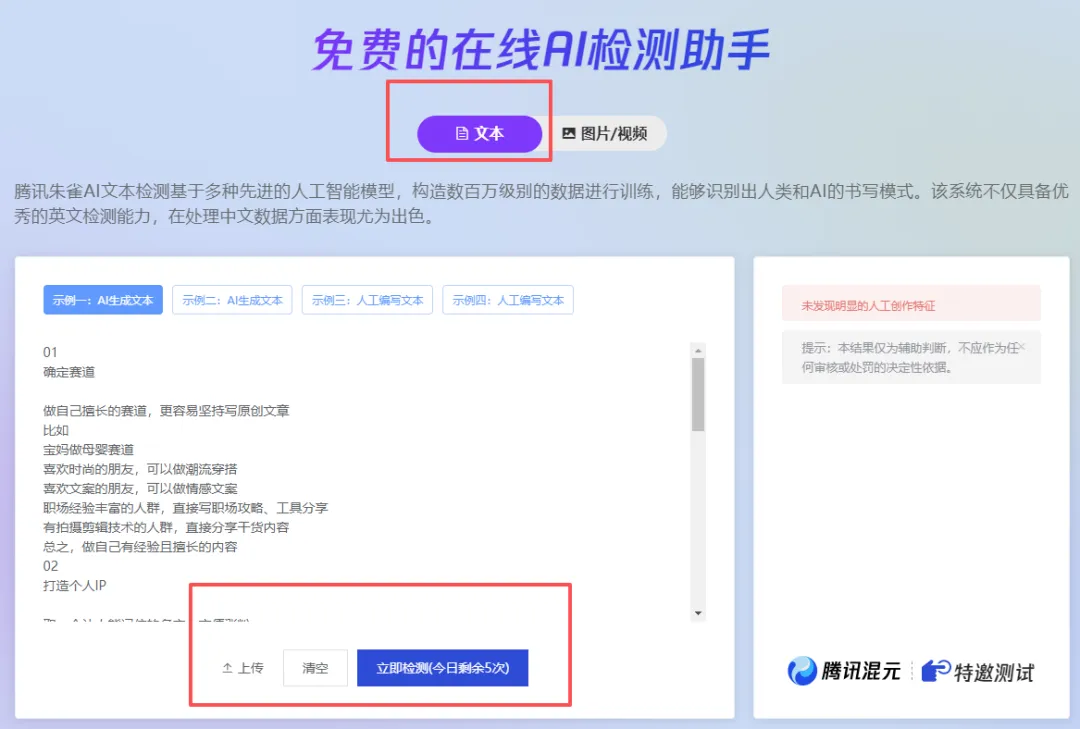 在线网址:https://matrix.tencent.com/ai-detect/