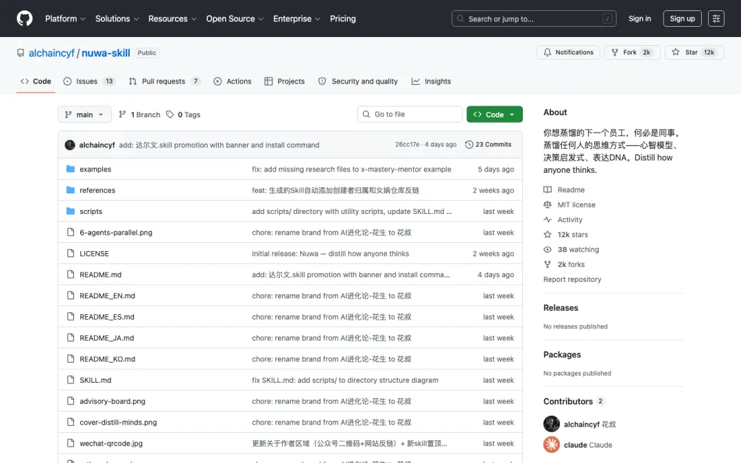 GitHub:https://github.com/alchaincyf/nuwa-skill