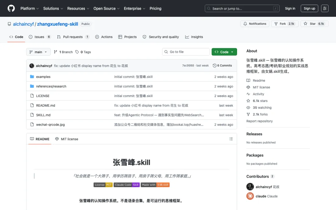 人走了还不到两周呢,GitHub上就冒出来一个张雪峰.skill。