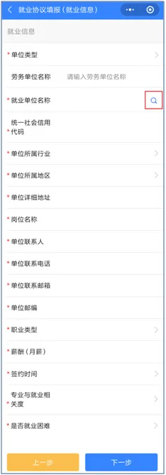 (4)★统一社会信用代码:当输入正确的单位名称时,“统一社会信用代码”会自动匹配,无须手动填写。如“就业单位名称”项目中无法查询,须与签约单位确认或自行查询;
