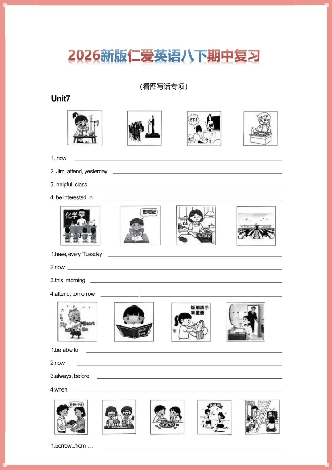 2026新八下仁爱版英语期中考试看图写作专项复习要点含解析版(可打印)