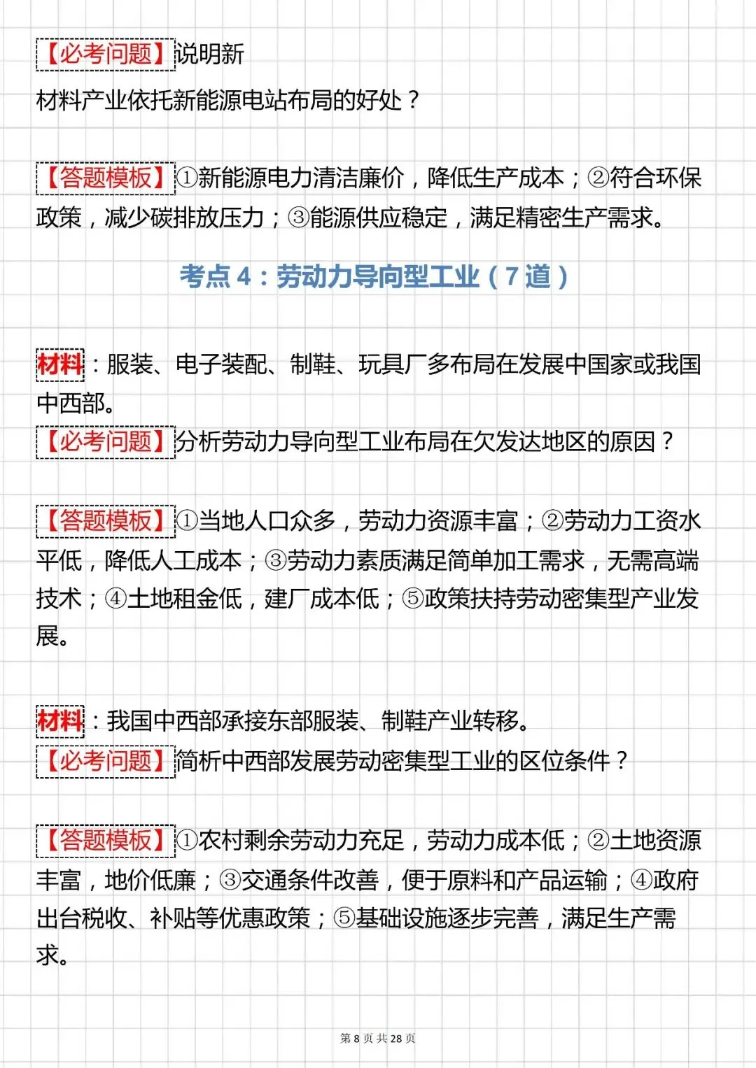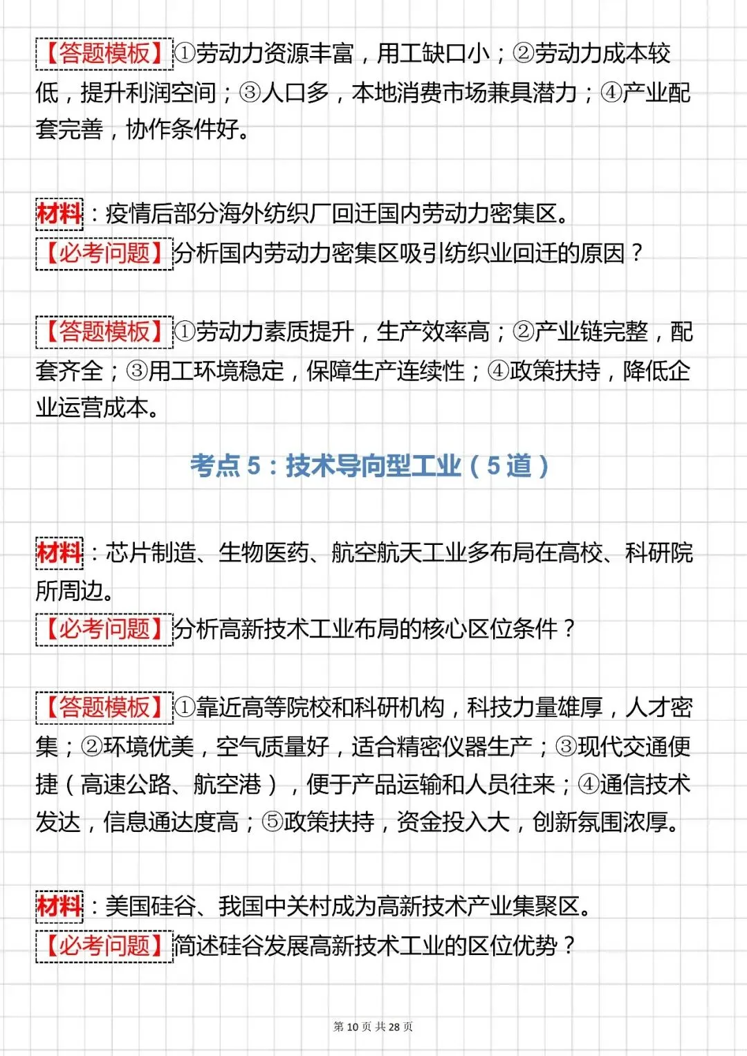 高考地理【工业区位高频大题 100 道】可打印 快收藏