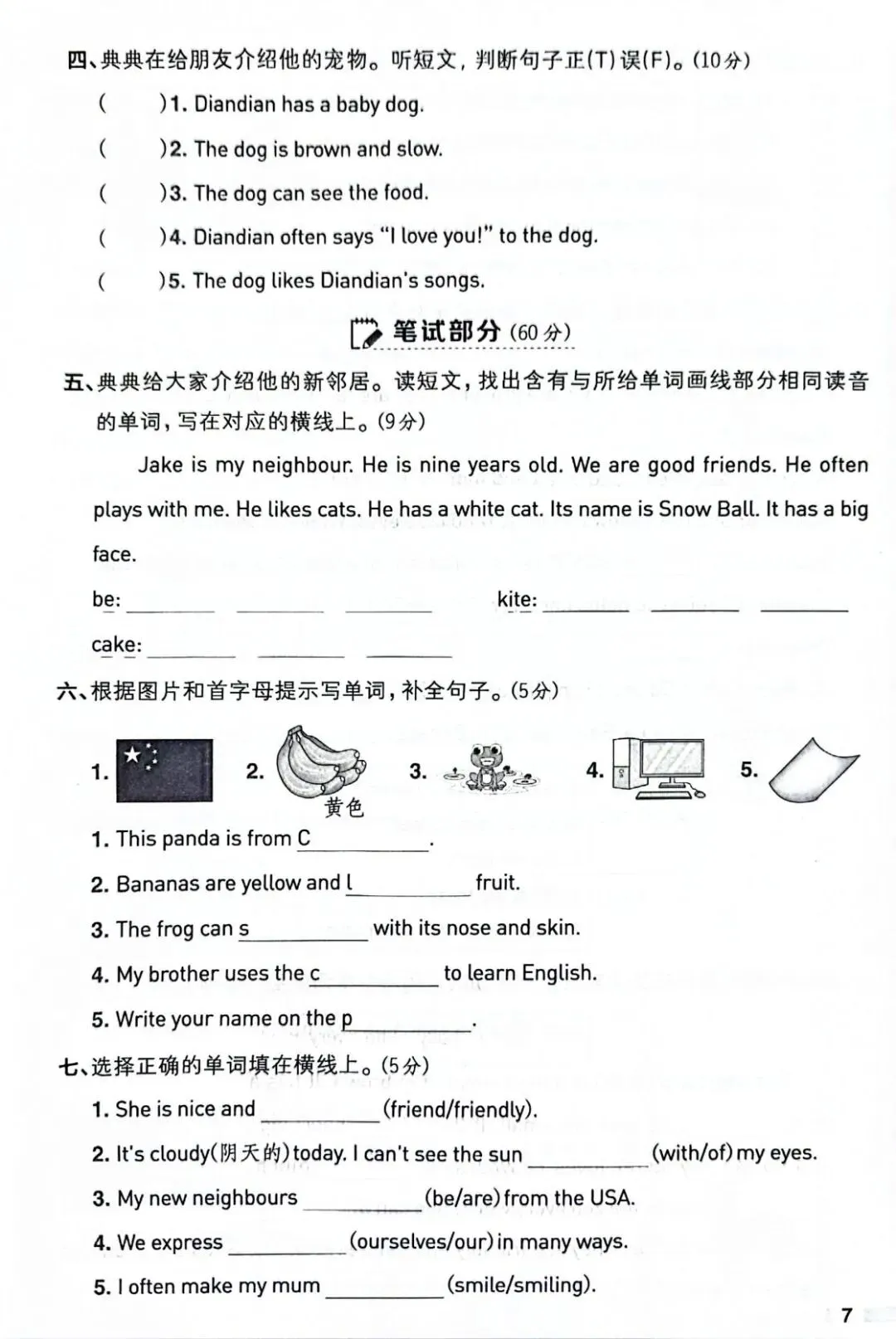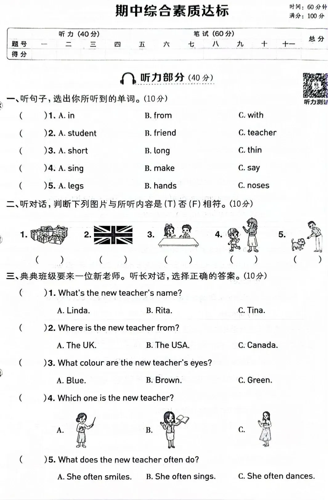 三年级下册英语期中测试卷|可打印(含讲解) 本次复习卷包含:单词默写、短语搭配、单项选择、情景交际、句子排序、阅读理解、基础仿写。全部为校内常考题型,贴合课本考点,基础薄弱的孩子多练几遍,夯实英语基础。 资料全部无水印可直接打印。家长可以保存图片/打印出来,每天让孩子练习一小部分,熟悉考点、规范答题。后续会持续更新各年级英语单元练习、期末真题、知识点总结,关注公众号,不错过更多学习资料!需要其他年级、也可以留言告诉我~ 讲解视频在此