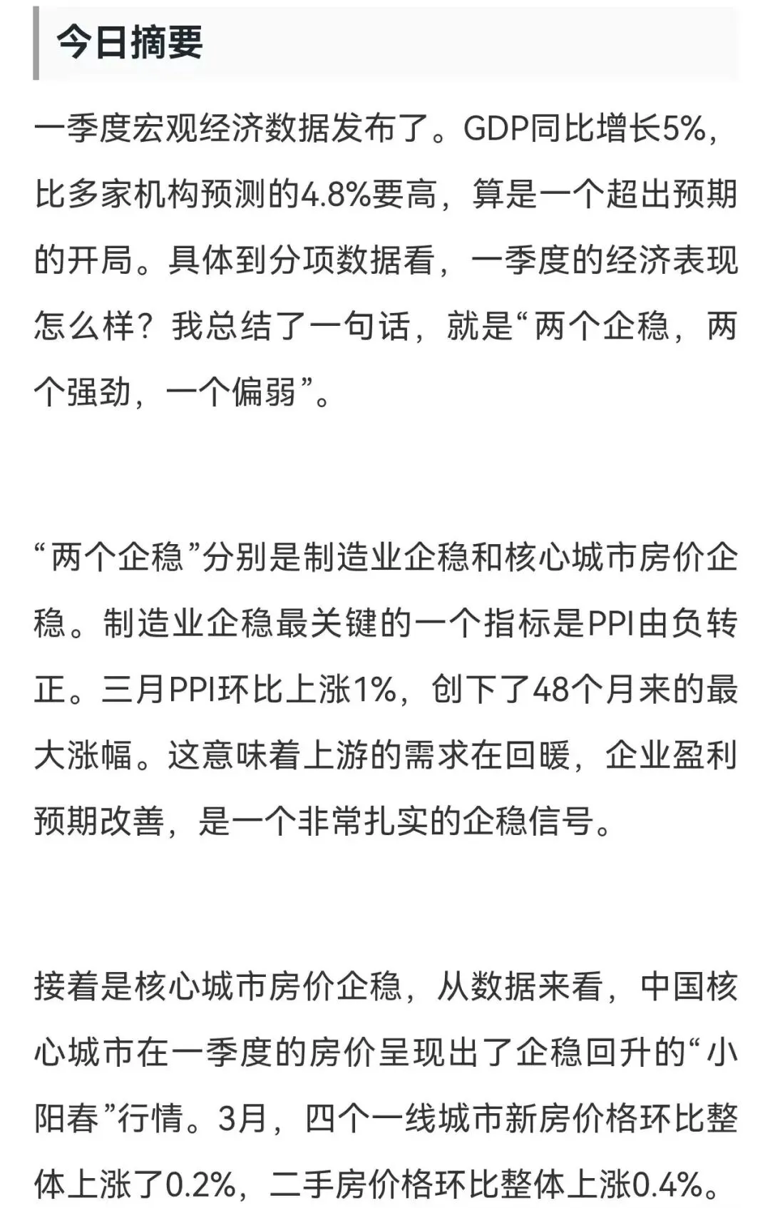 一季度经济数据解读:两个企稳 两个强劲 一个偏弱