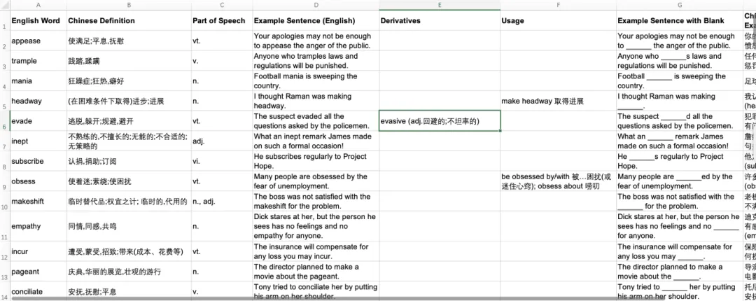 这一次,我们将备考专八中最关键的词汇模块,基于最新版权威词表与历年真题频率,再度结构化拆解、转化为可练习、可编排、可追踪、可语境迁移的电子表格系统。