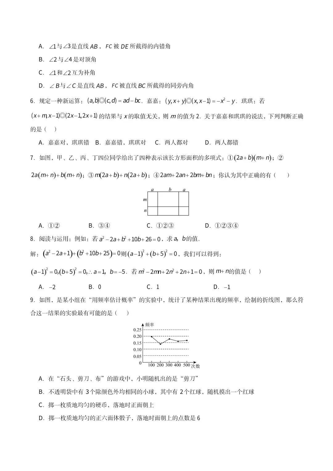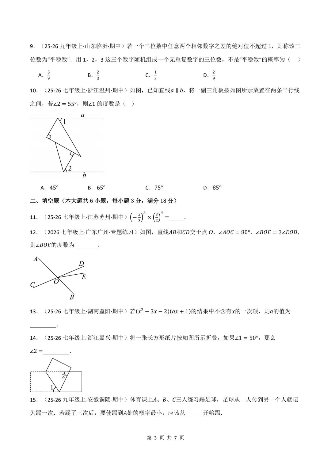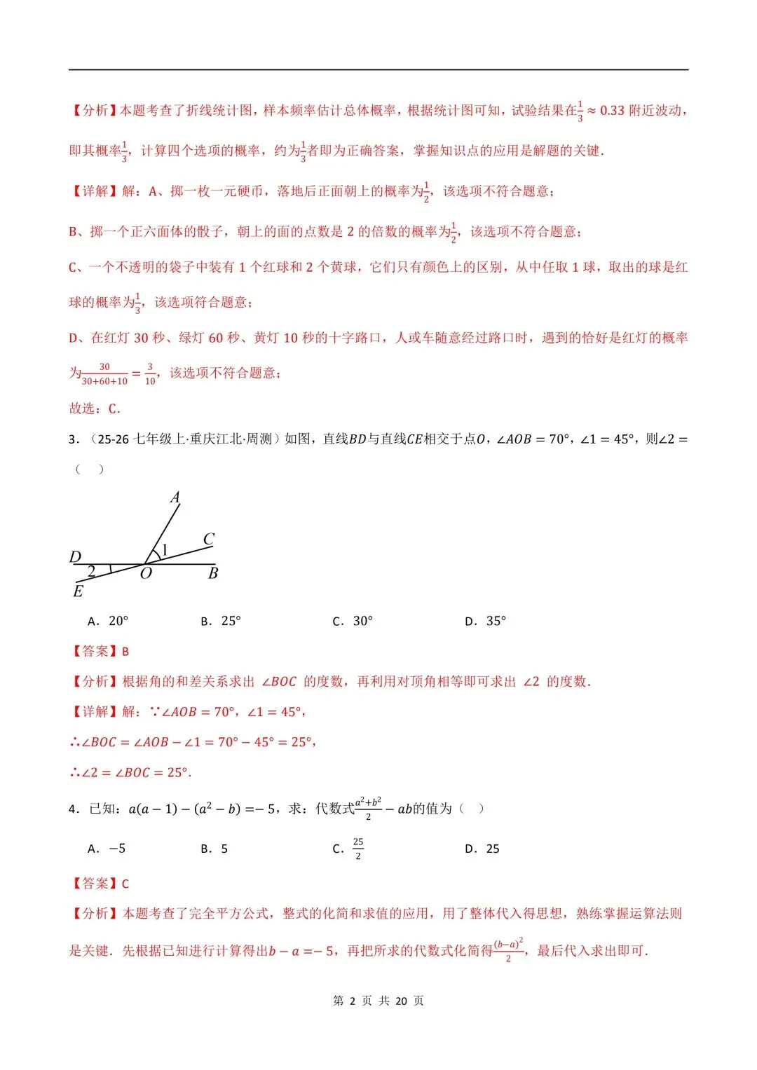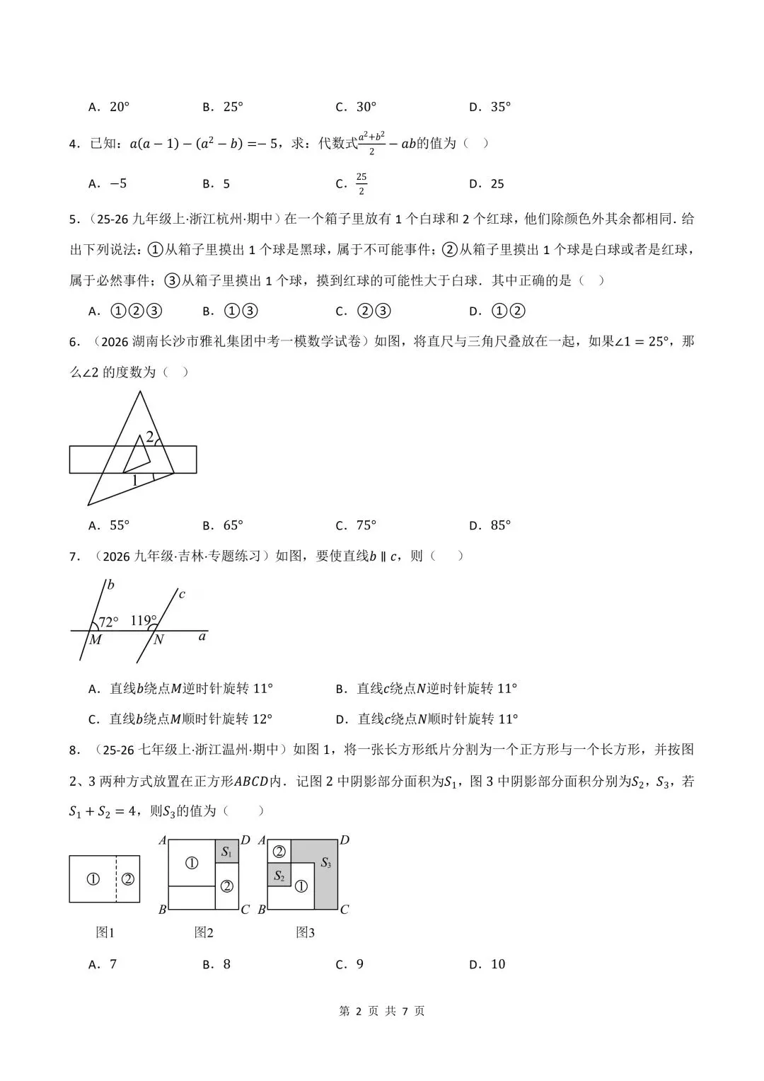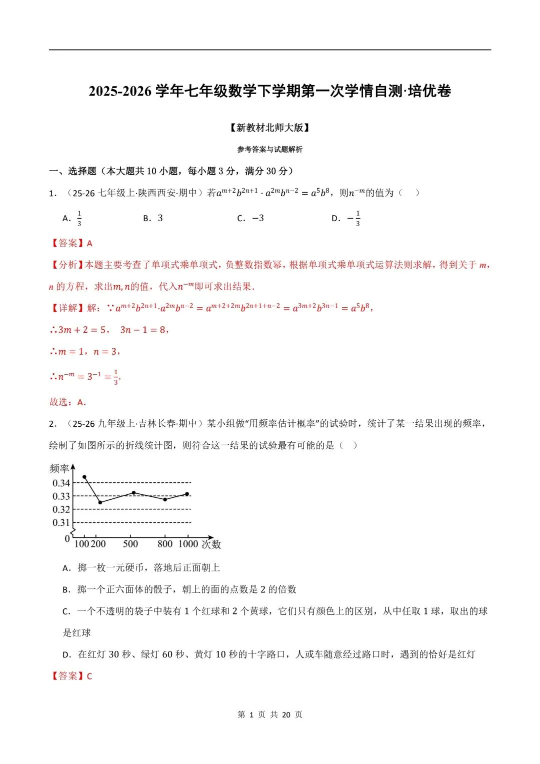 期中试卷|2026年北师大版七年级下册数学期中真题模拟测试卷(6套含答案)电子版可打印。